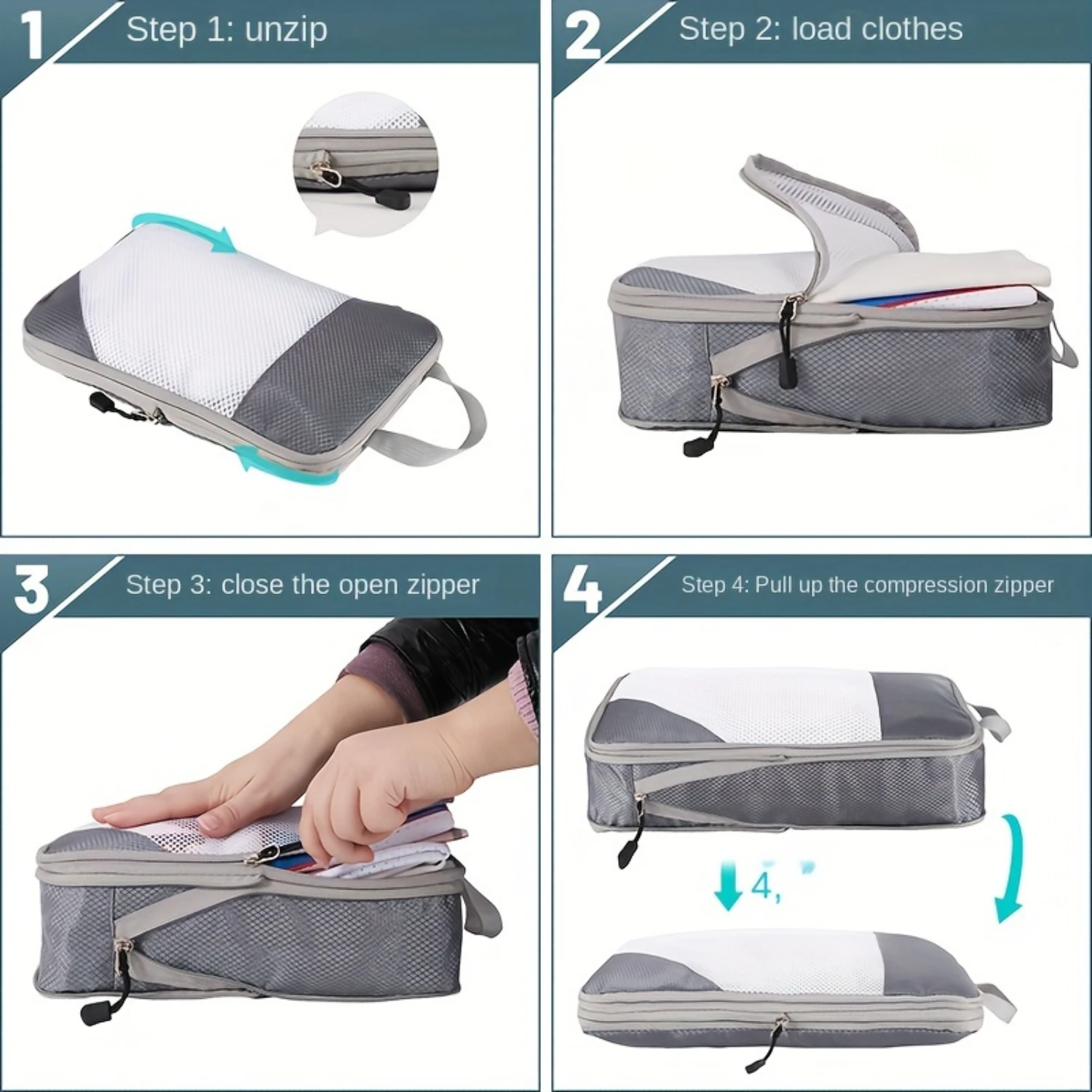 5.ابق منظمًا وأنيقًا أثناء رحلاتك مع حقائب التخزين المكعبة متعددة الاستخدامات.تعتبر منظمات الأمتعة المدمجة هذه مثالية للحفاظ على حقيبتك مرتبة وملابسك خالية من التجاعيد، بغض النظر عن المكان الذي تأخذك إليه رحلتك.