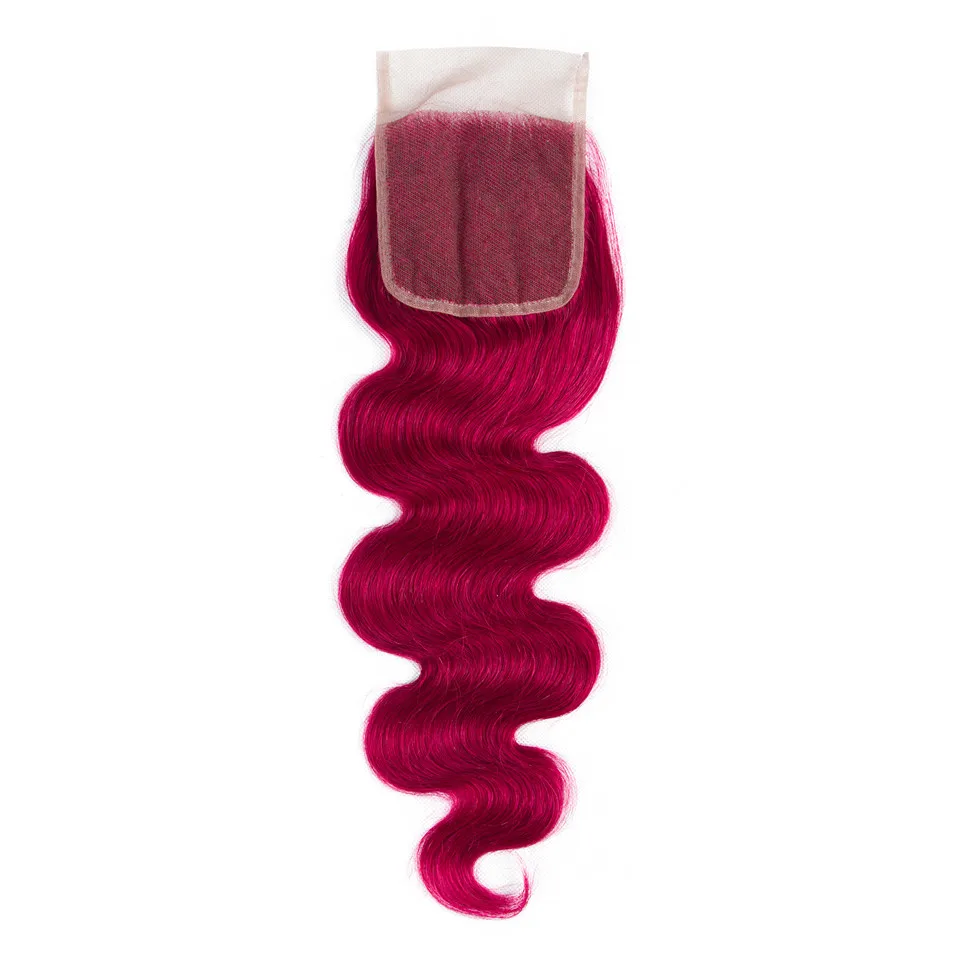 لون عنابي إغلاق من الدانتيل للشعر البشري |
