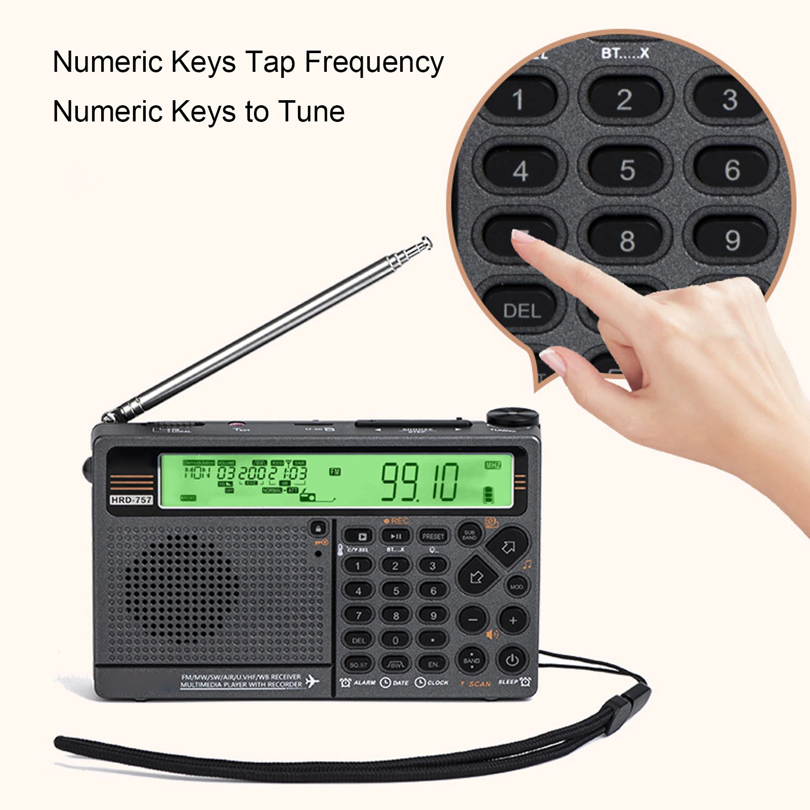 5.متعدد النطاقات: يدعم راديو تشغيل البلوتوث الاستماع متعدد النطاقات، وتغطية SW، وFM، وMW، وAIR، وV.UHF والإشارات الأخرى يتم ضبطها بوضوح.مع وضعين للتشغيل التلقائي، والتنبيه وبث الأخبار، يمكنك ضبطهما حسب الحاجة.