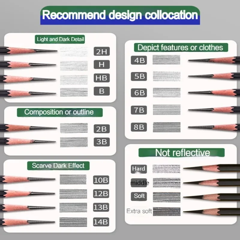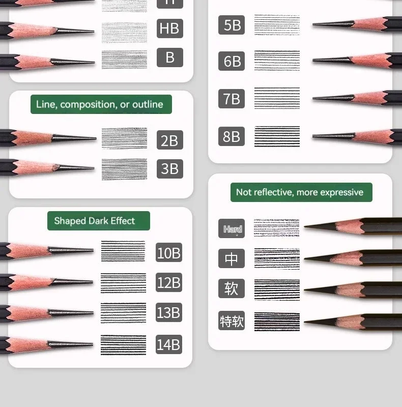 مجموعة أقلام رسم احترافية 2H H HB 2B 4B 6B 8B 10B 12B 14B أقلام رسم فحم صلبة لينة متوسطة أقلام رسم قرطاسية لوازم فنية من الغرافيت تصاميم أقلام رصاص مدرسية