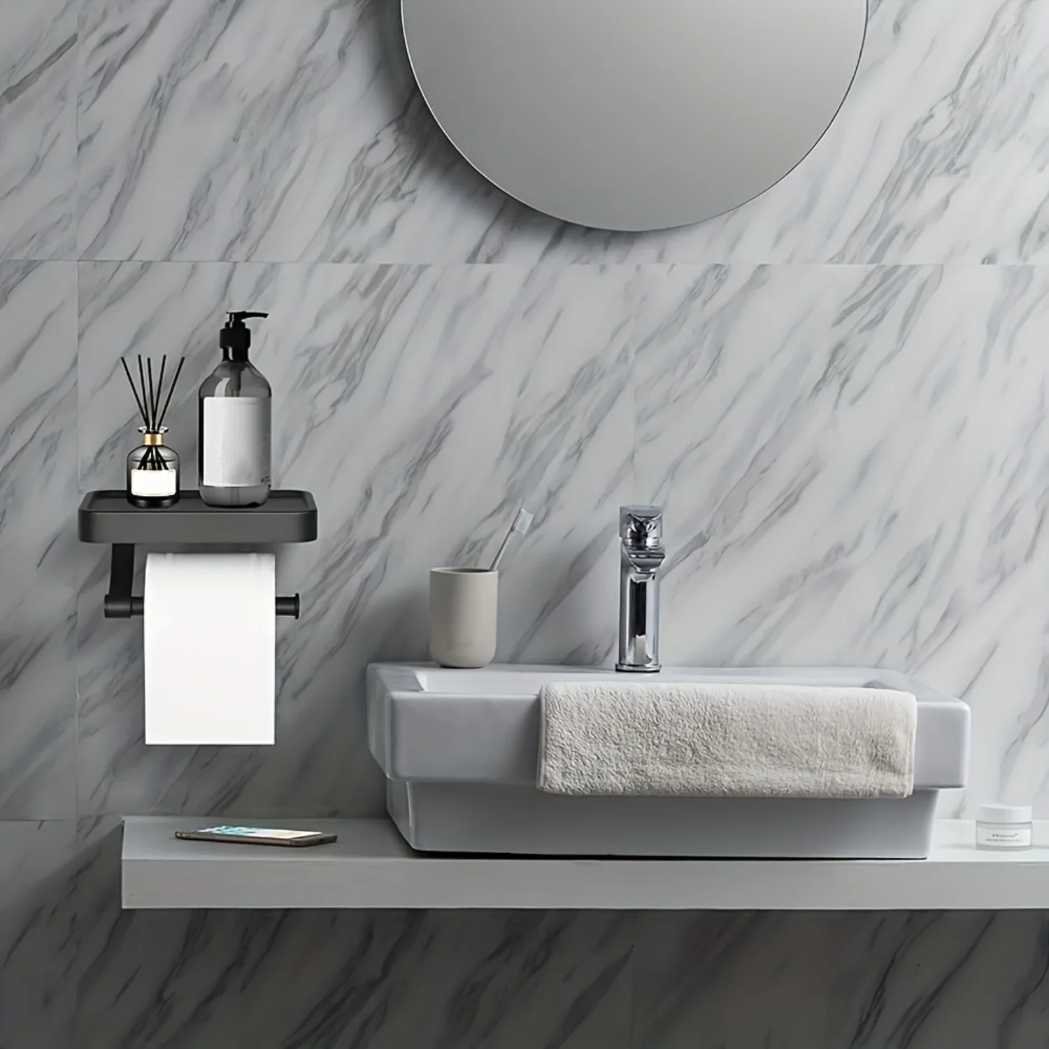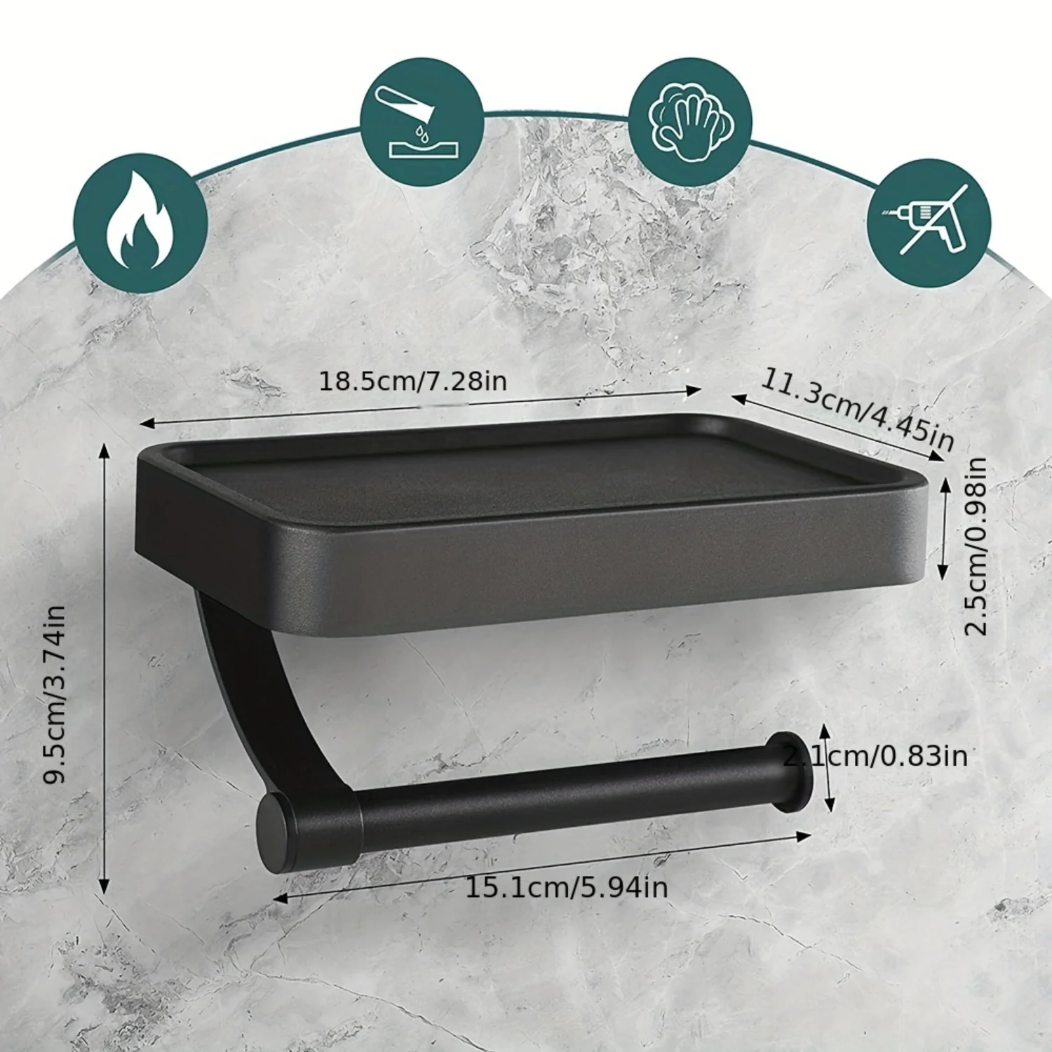 4.أضف لمسة من الأناقة إلى حمامك مع حامل ورق التواليت الأسود متعدد الأغراض المصنوع من الفولاذ المقاوم للصدأ.يتميز هذا الحامل برف هاتف مريح وتركيب سهل ذاتي اللصق، وهو خيار عملي وأنيق لأي حمام.