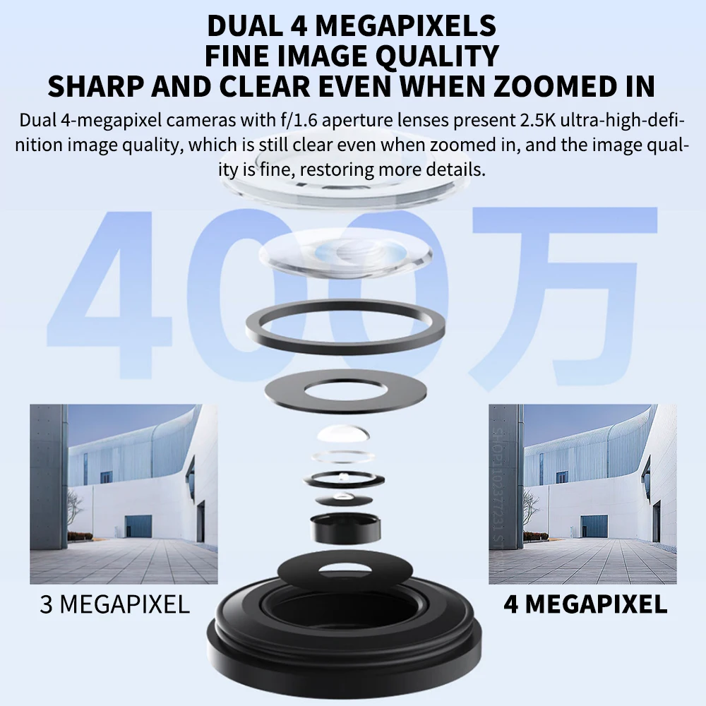 ● كاميرات مزدوجة 4 ميجابكسل مزودة بعدسة فتحة كبيرة f/x توفر جودة صورة فائقة الوضوح مع الحفاظ على الوضوح حتى عند التكبير.