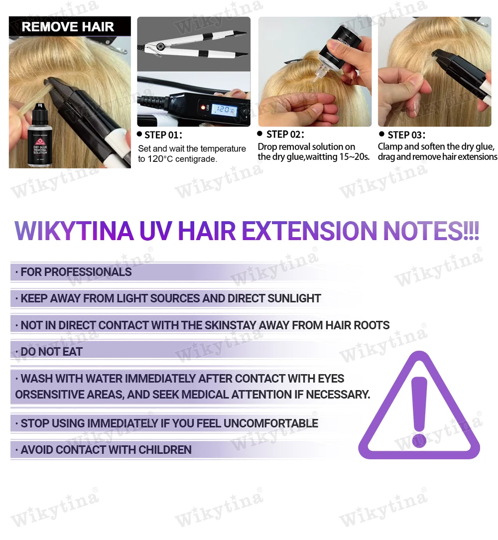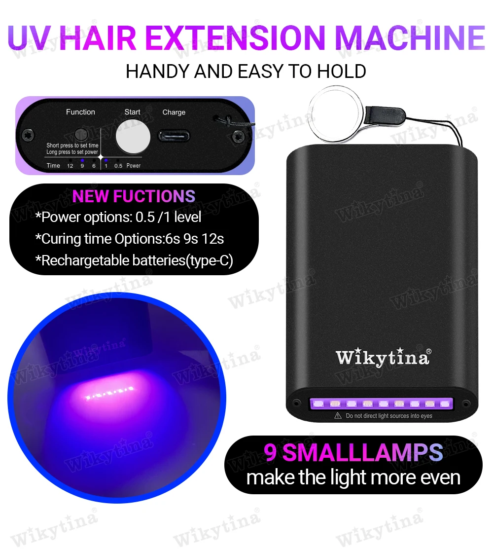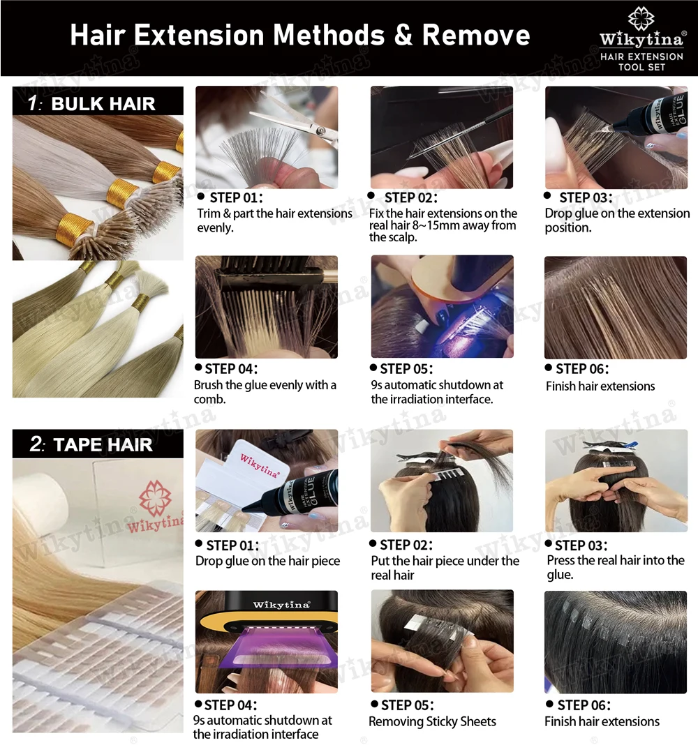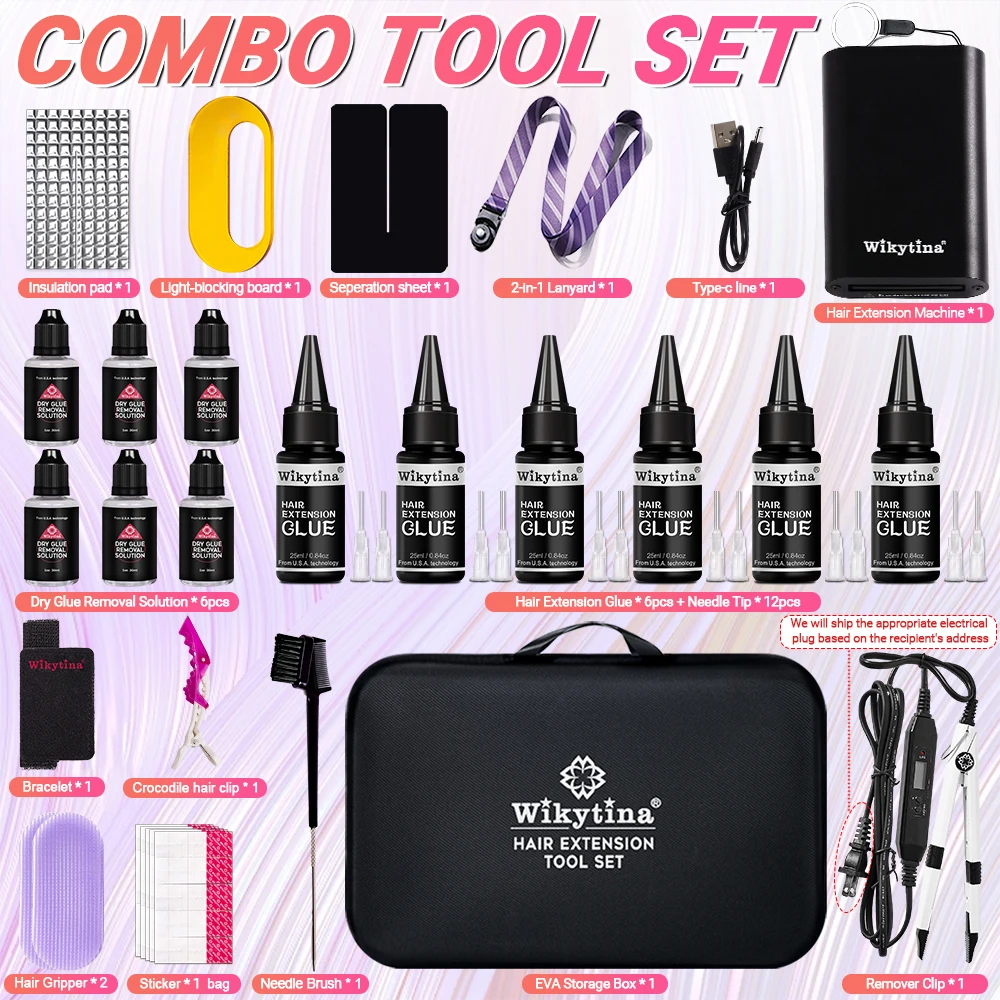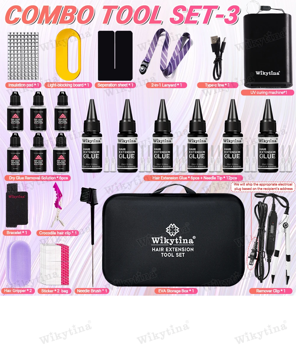 طقم وصلات الشعر الاحترافي بالأشعة فوق البنفسجية من WIKYTINA - مجموعة أدوات كاملة مع آلة إزالة الصمغ بالأشعة فوق البنفسجية، آلة إطالة الشعر بالأشعة فوق البنفسجية