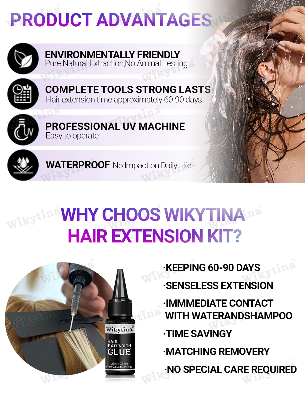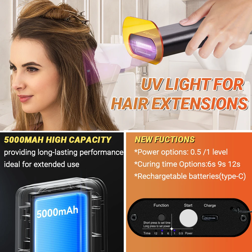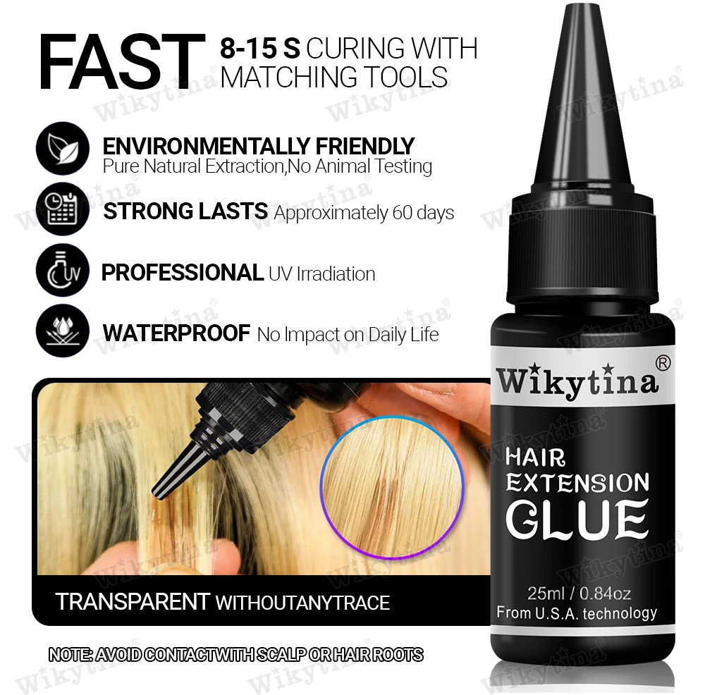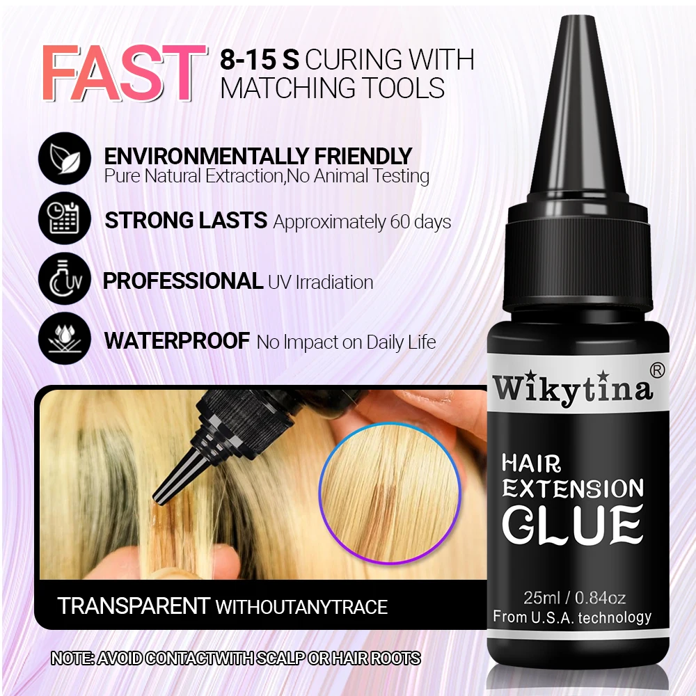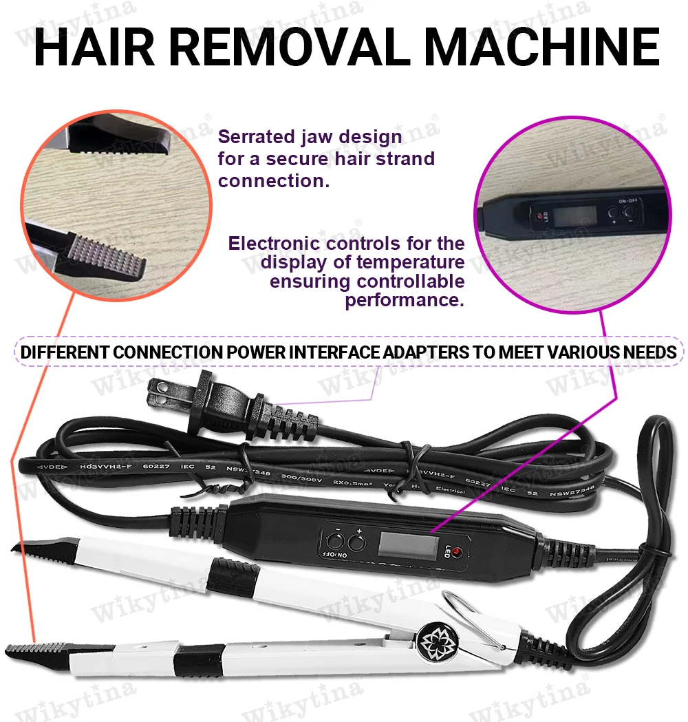 طقم وصلات الشعر الاحترافي بالأشعة فوق البنفسجية من WIKYTINA - مجموعة أدوات كاملة مع آلة إزالة الصمغ بالأشعة فوق البنفسجية، آلة إطالة الشعر بالأشعة فوق البنفسجية