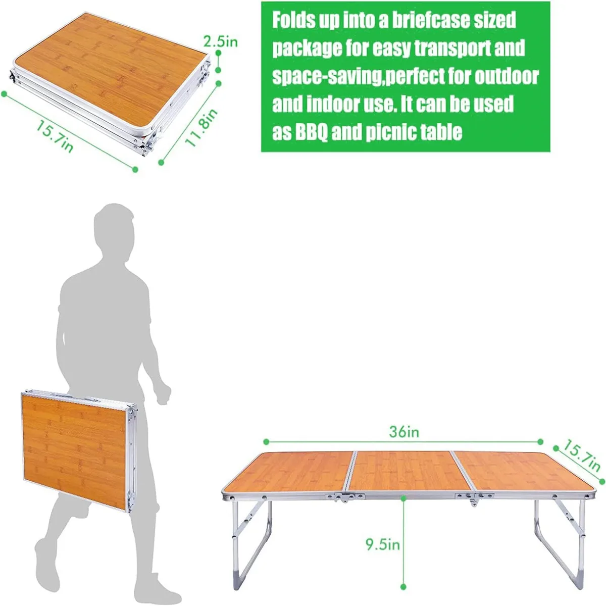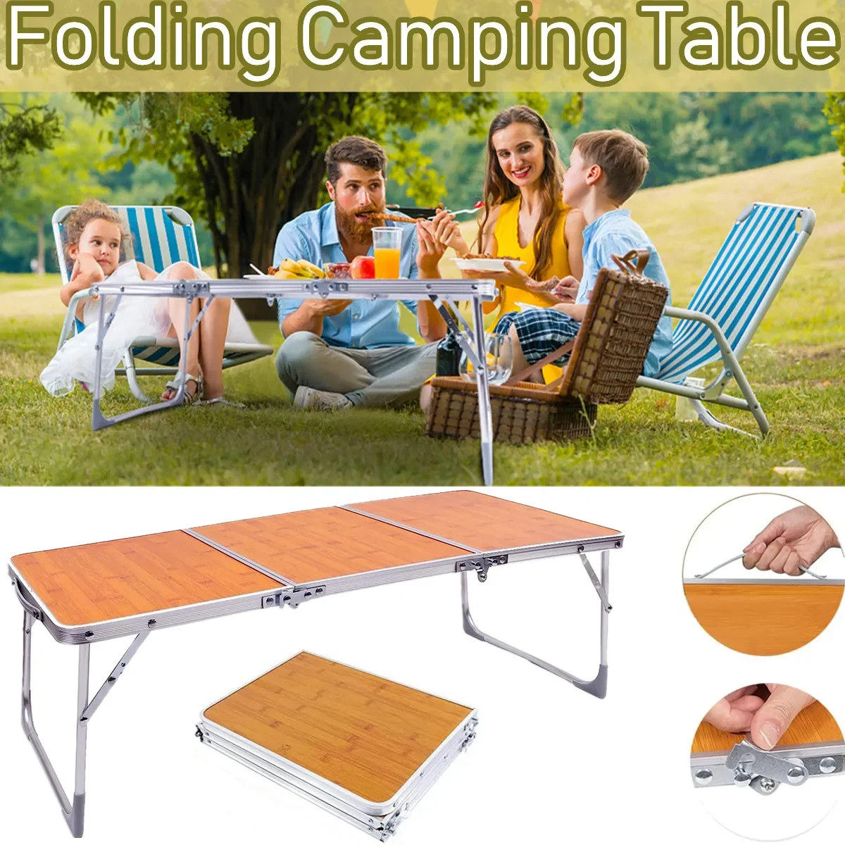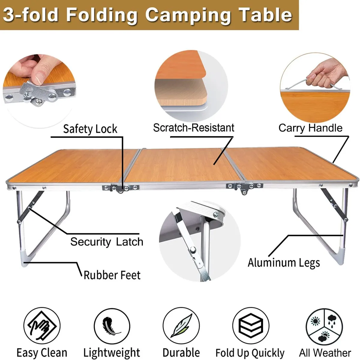 3 Fold Lightweight Beach Table for Home Picnic BBQ, Folding Camping Table Portable Picnic Table Outdoor Table with Aluminum Legs