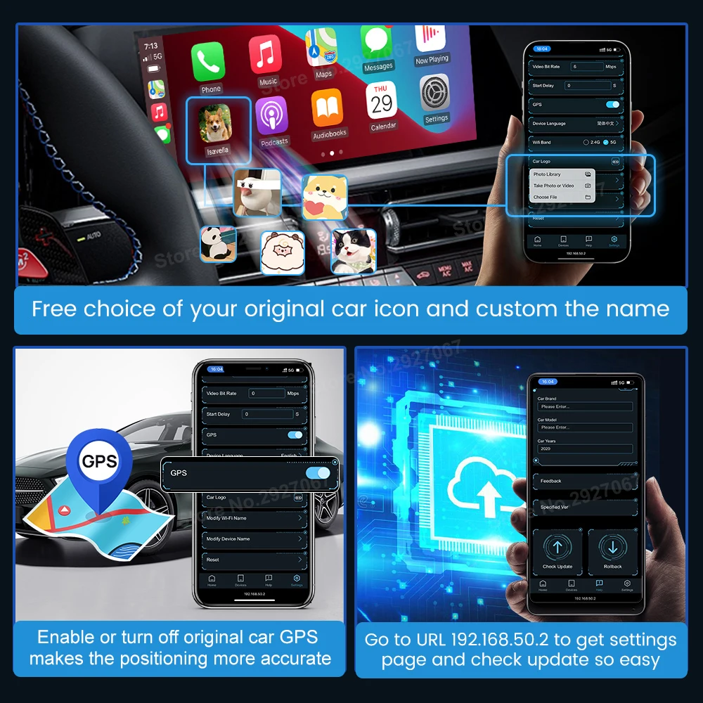 2.They all support automatical connection, plug and play, split screen, original control methods or sound, OTA upgrade, online feedback.