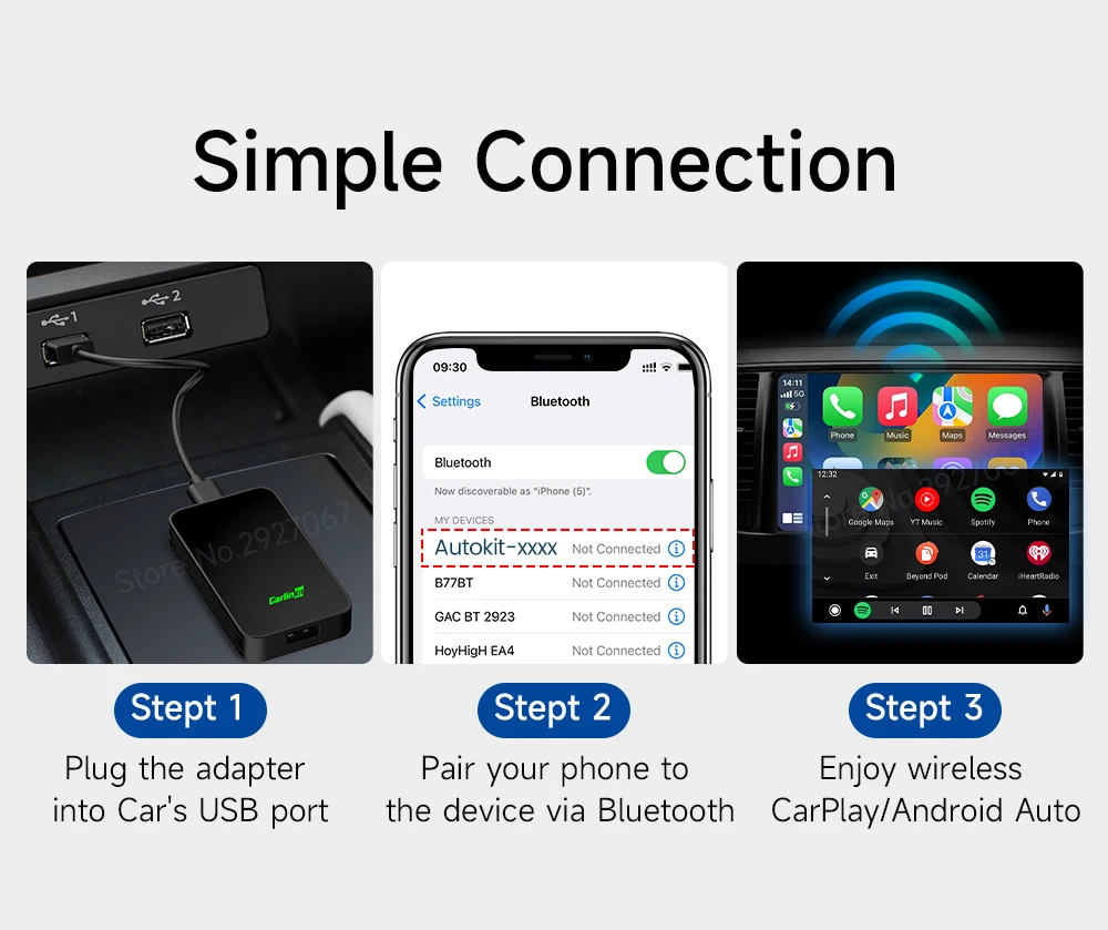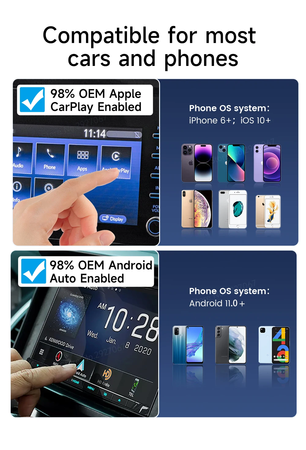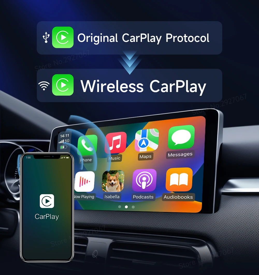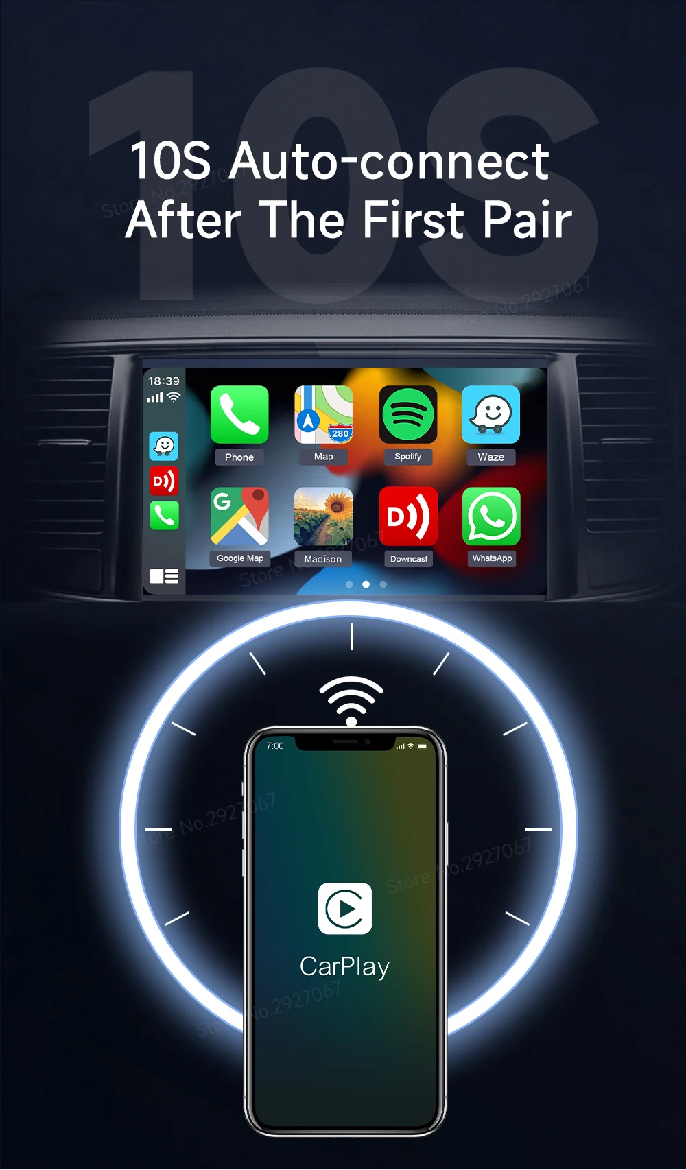 2.Only if your car is original with wired apple CarPlay enabled and you have iPhone with iOS 10 or newer version, then you can use this adapter for wireless CarPlay.