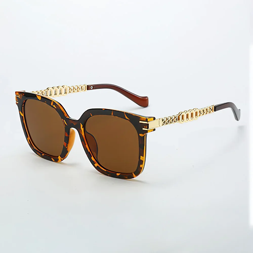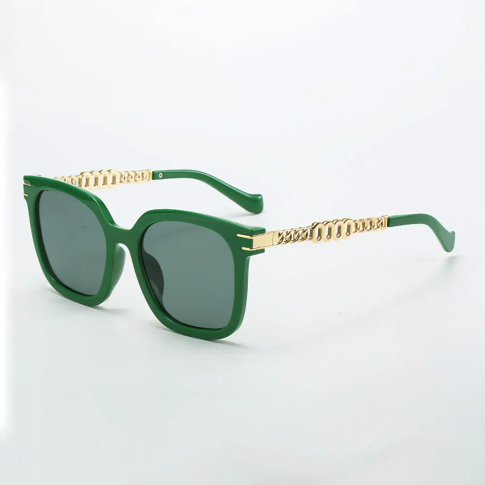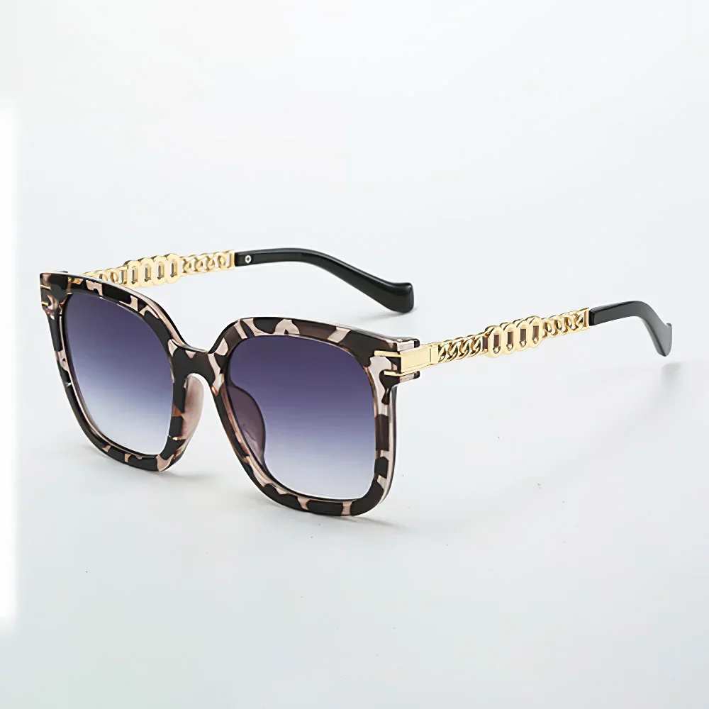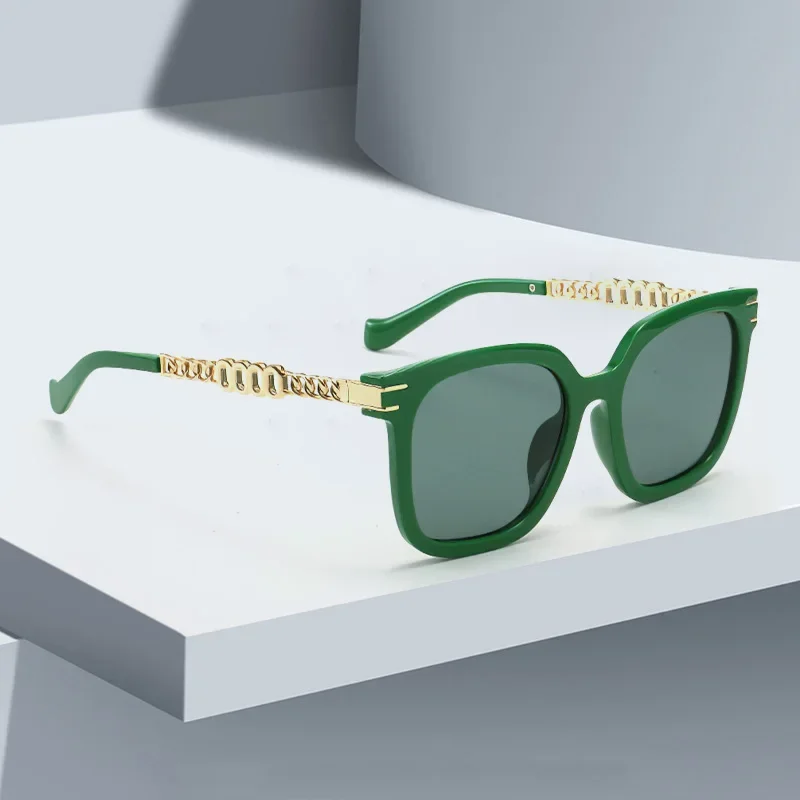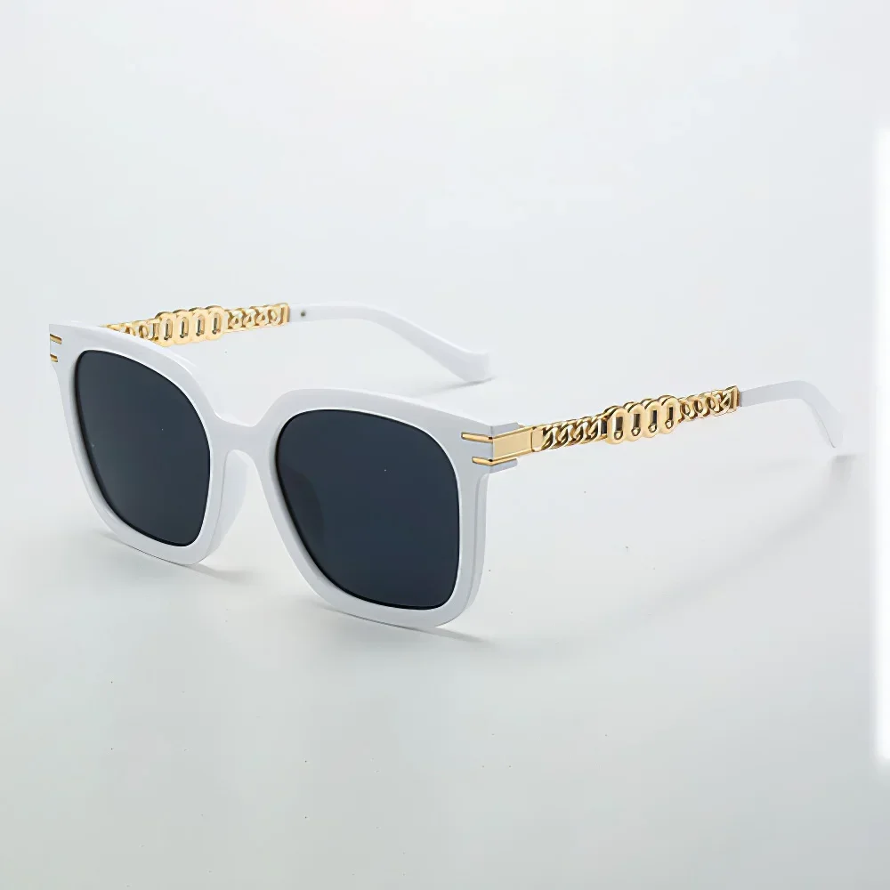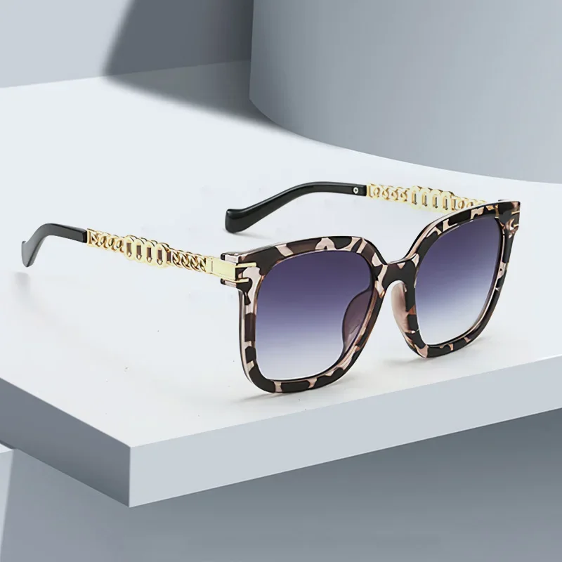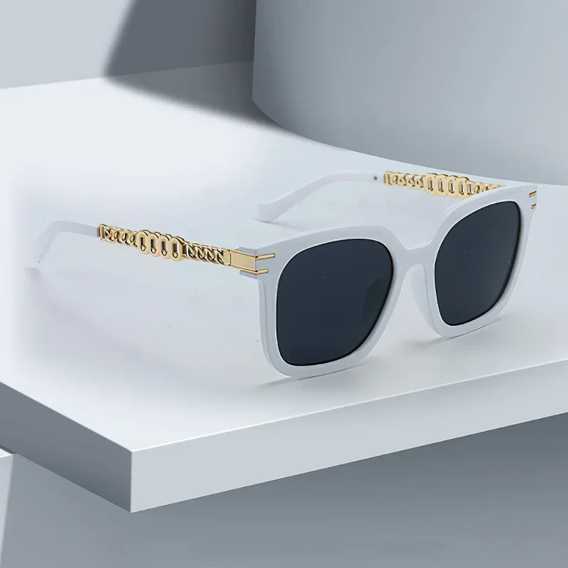 جديد 2025 في النظارات الشمسية الكلاسيكية للنساء سلسلة ذهبية فاخرة مزينة باللون الأسود نظارات مربعة العدسات الداكنة نظارات النساء