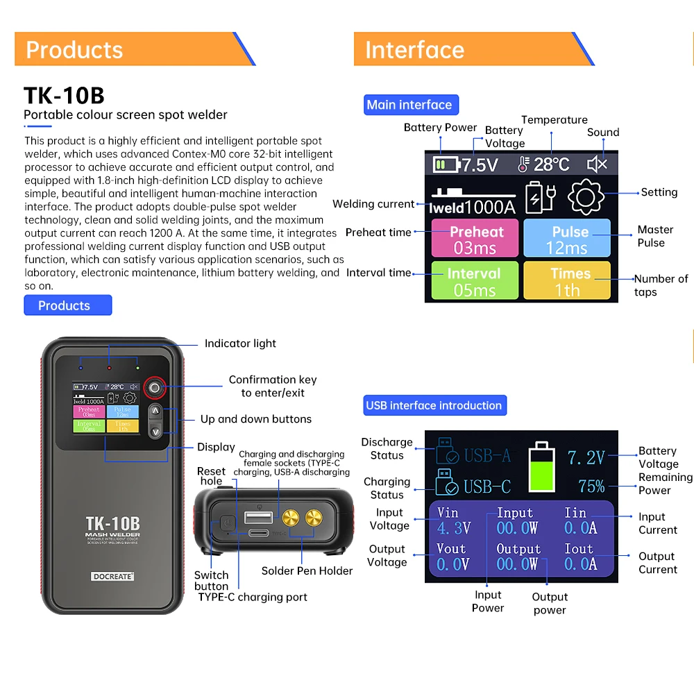 TK-10B ماكينة لحام البقعة الرقمية 5000mAh أدوات لحام النبض المزدوج لبطارية ليثيوم 18650 ماكينة لحام ذاتية الصنع قابلة للحام 0.1-0.25 مللي متر