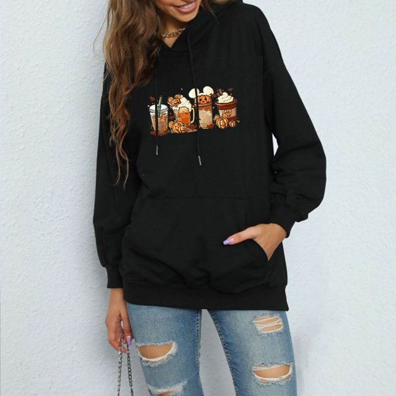 ملابس نسائية هالوين ربيع وخريف الموضة مطبوعة كاريكاتيرية الظهر علو الرقبة زائد شكل حرف V مع هودي بالجملة