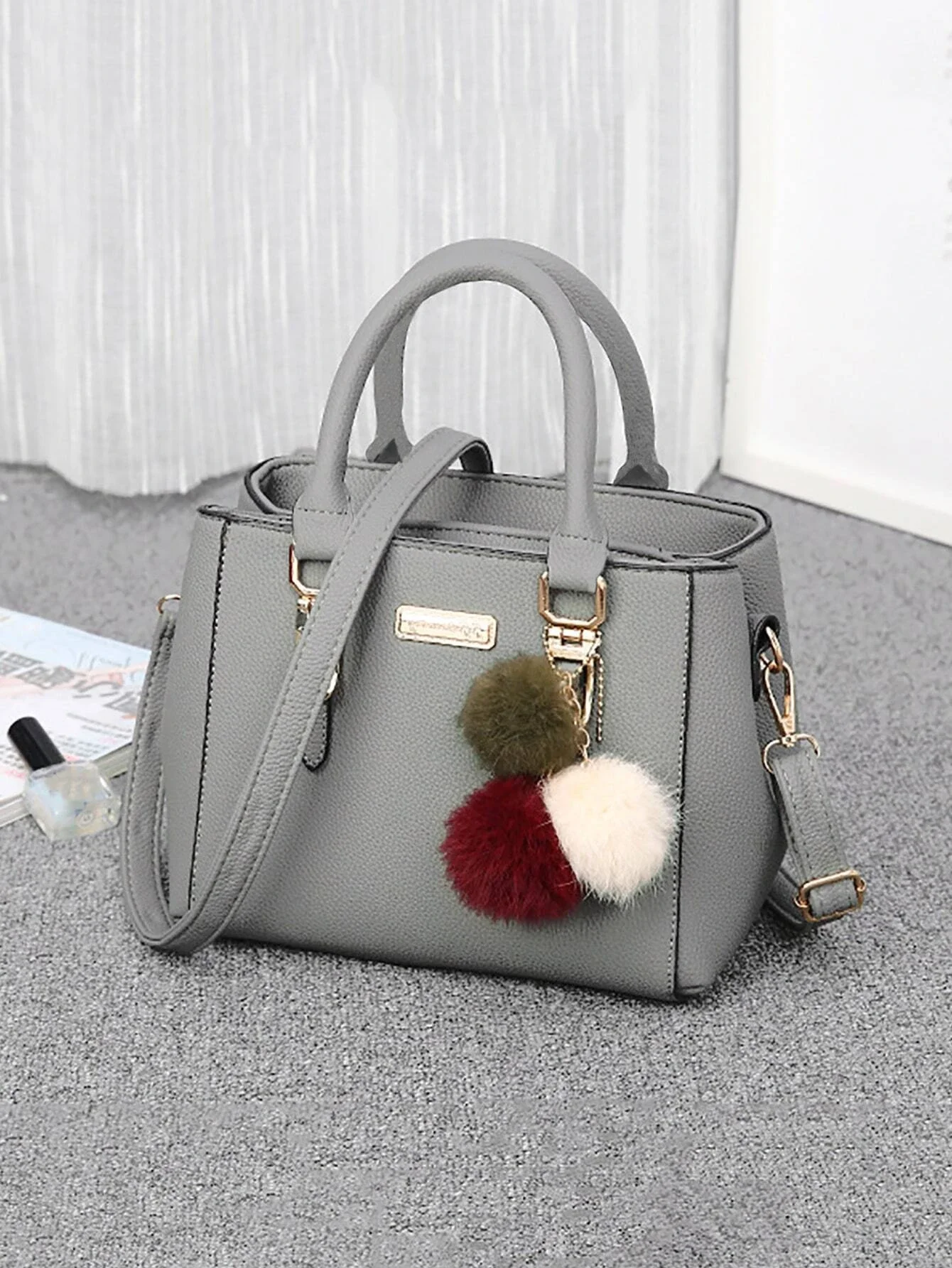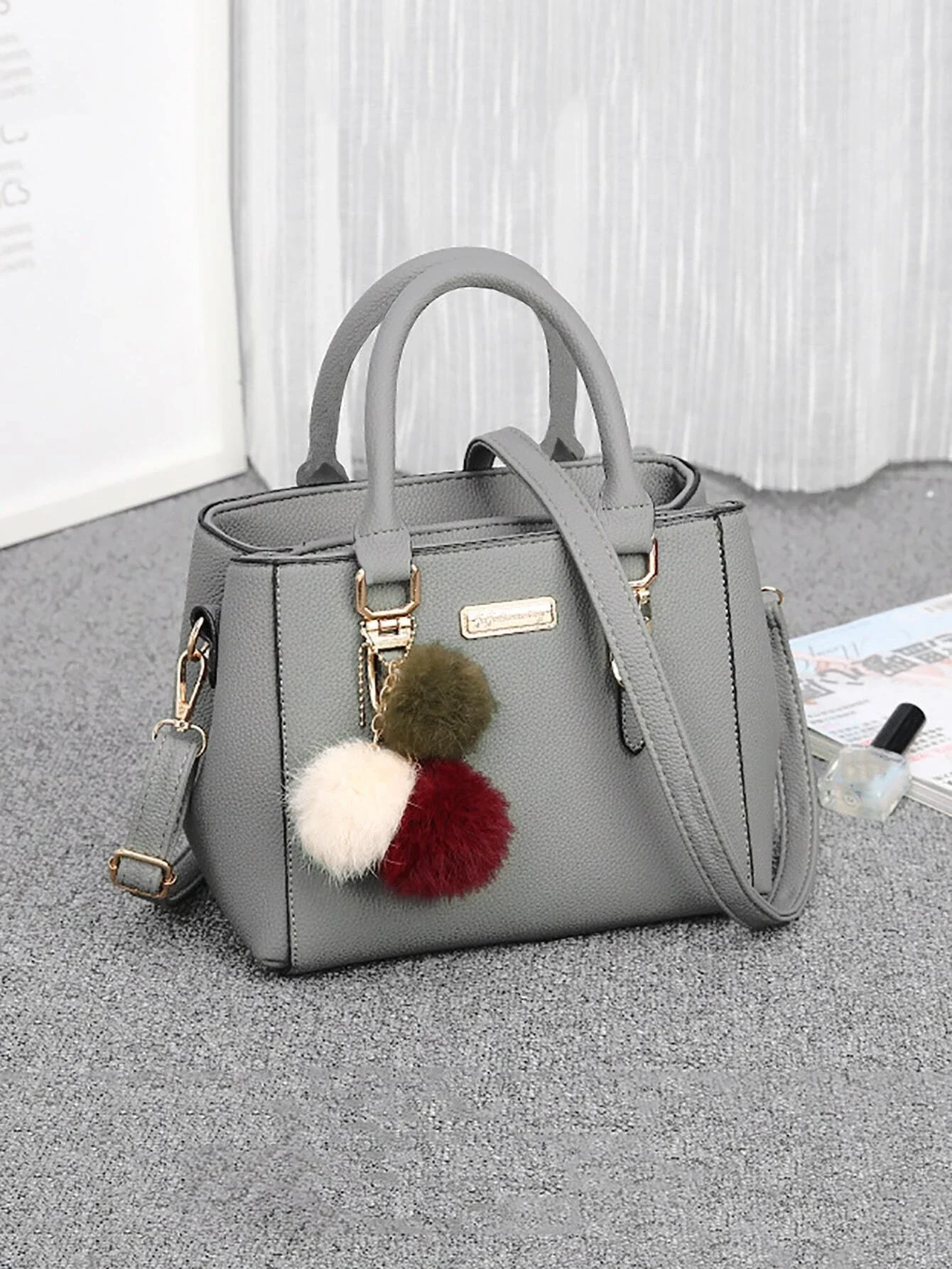 3.ارفع مظهرك مع هذه الحقيبة العصرية المصنوعة من البولي يوريثان، والتي تتميز بملمس منقوش حصوي وسحر بوم بوم المرح، مثالية للفتيات المراهقات وطلاب الجامعات والمبتدئين والعاملين ذوي الياقات البيضاء.