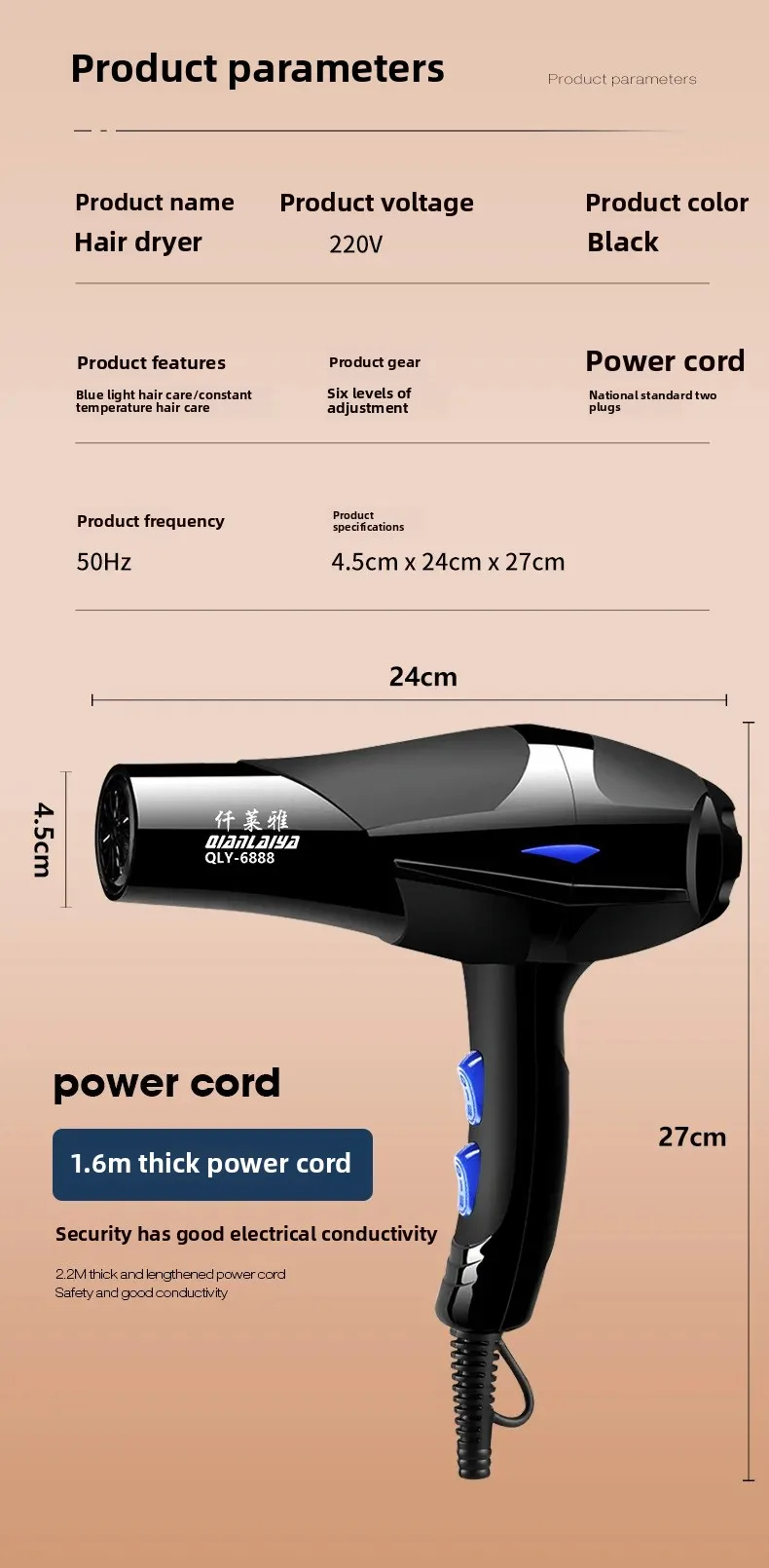 مجفف شعر عالي الطاقة بجودة الصالون والرياح الباردة والساخنة ودرجة حرارة ثابتة لحماية الشعر للاستخدام المنزلي عنصر هدية من الصين
