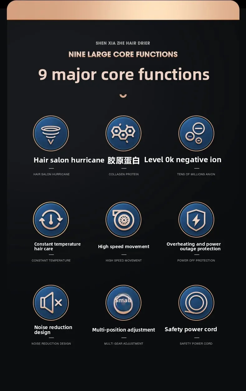 • تصميم يستحق الهدايا:بفضل تصميمه الأنيق، يمثل مجفف الشعر هذا هدية رائعة للأحباء الذين يقدرون العناية بالشعر عالية الجودة.