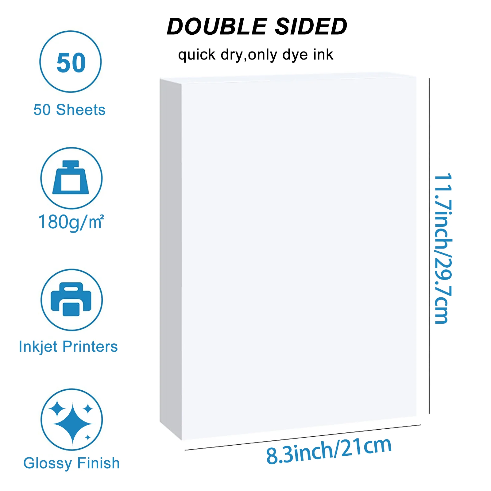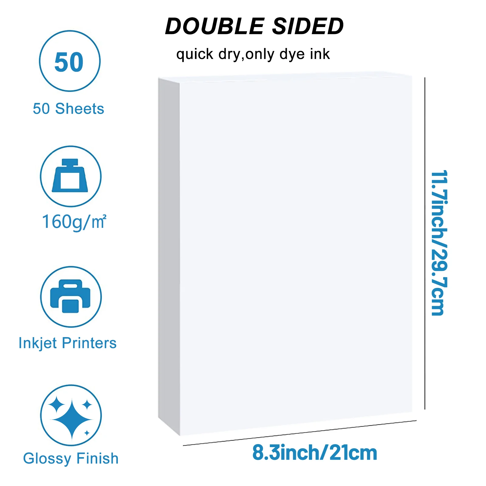 HUSPER A4 Double-Sided Glossy Photo Paper 50 Sheets 120/140/160/180/200/240/260/300gsm for Inkjet Printer Glossy Printing Paper