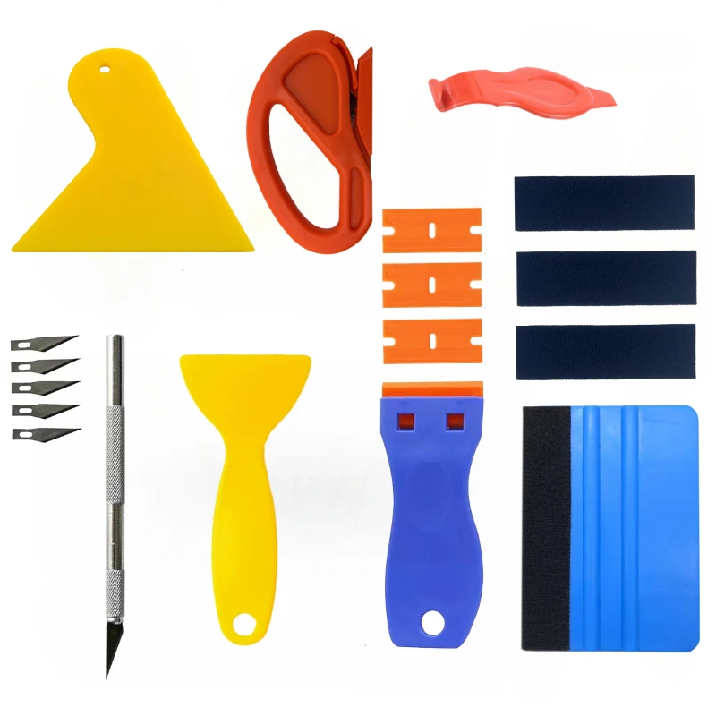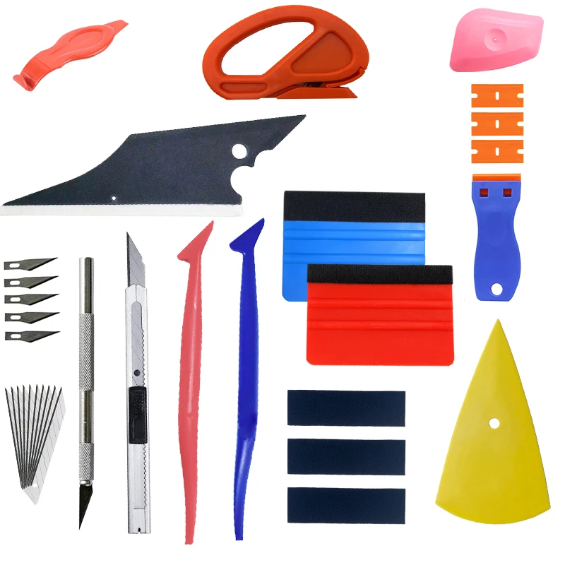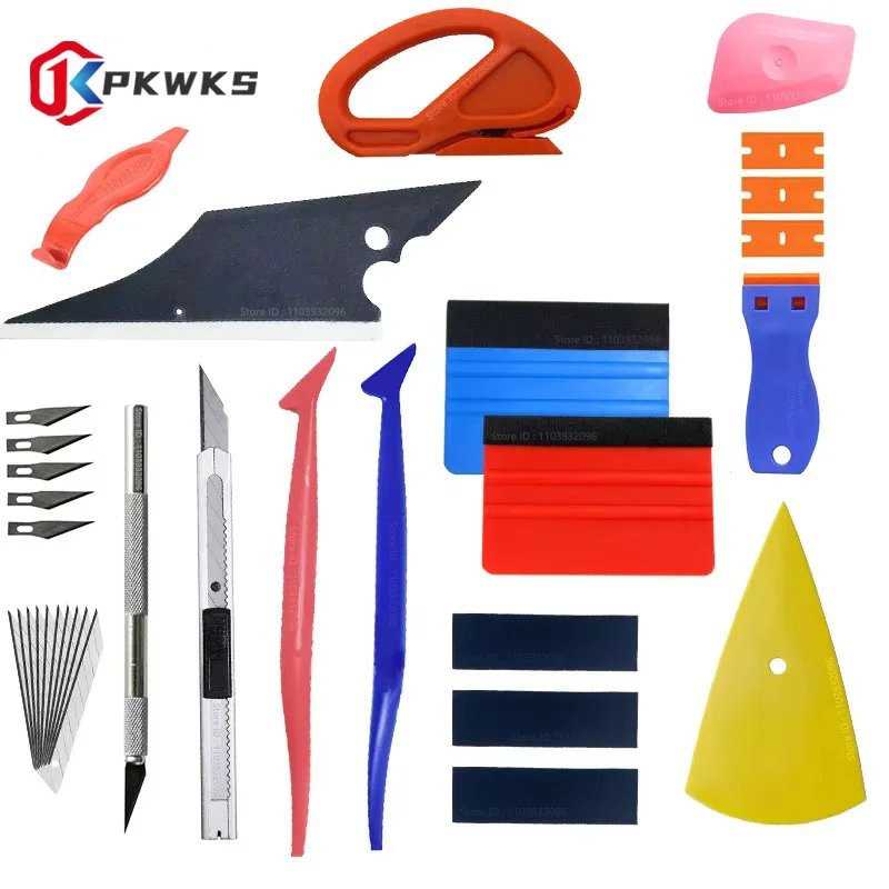 Car Film Wrapping Tool Kit Window Tinting Tools Vinyl Wrap Felt Squeegee Wrap Stick Vinyl Cutter Utility Knife Plastic Scraper