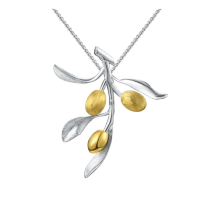 تعليقة أوراق الزيتون وثمرتها فضة 925 مصنوعة يدوياً