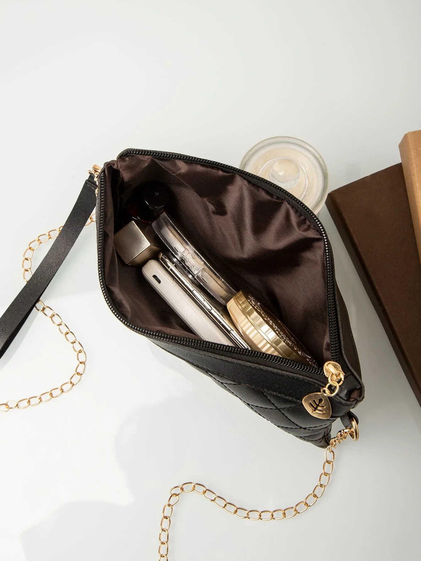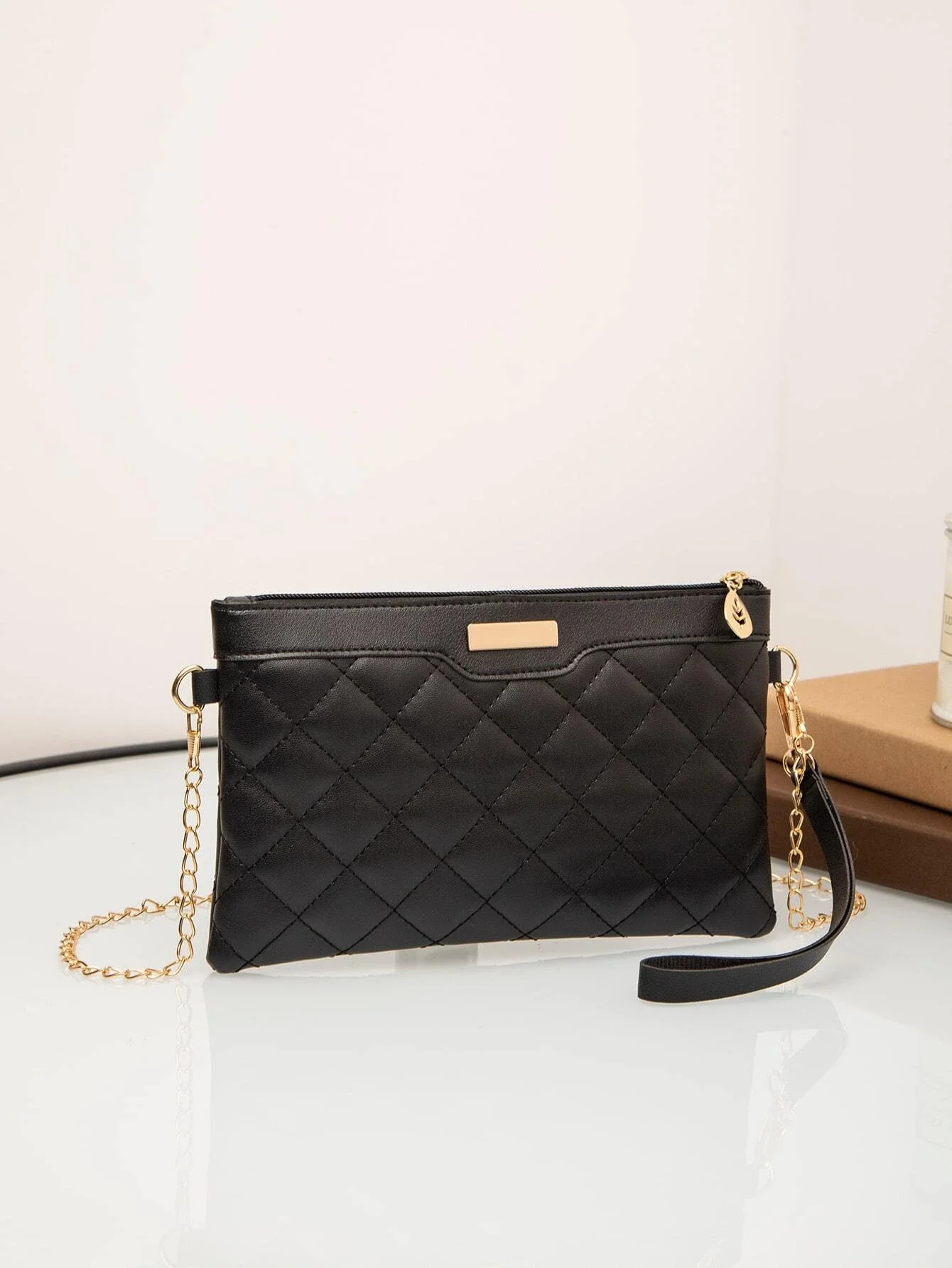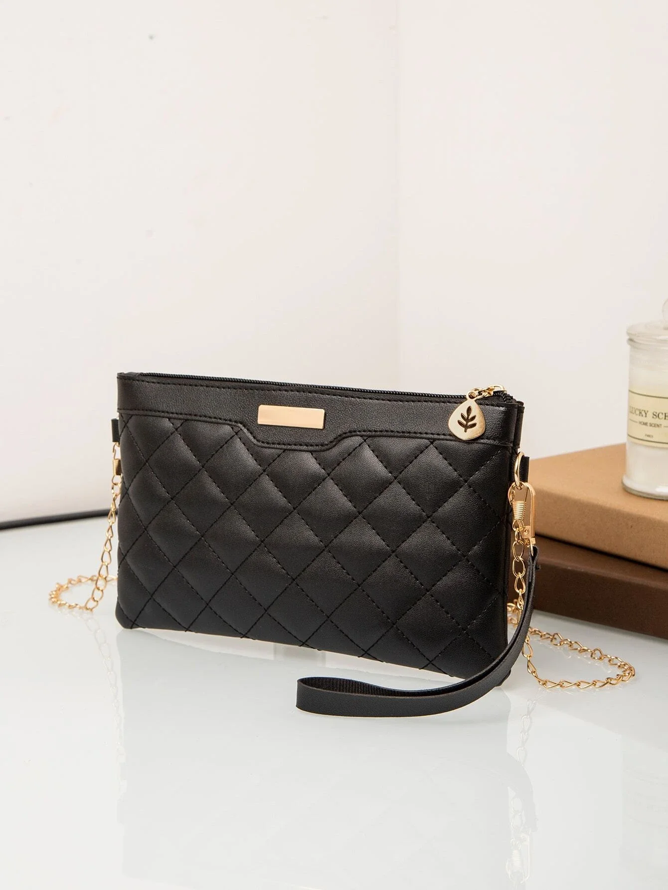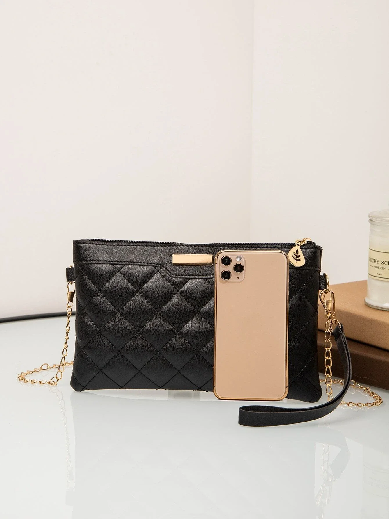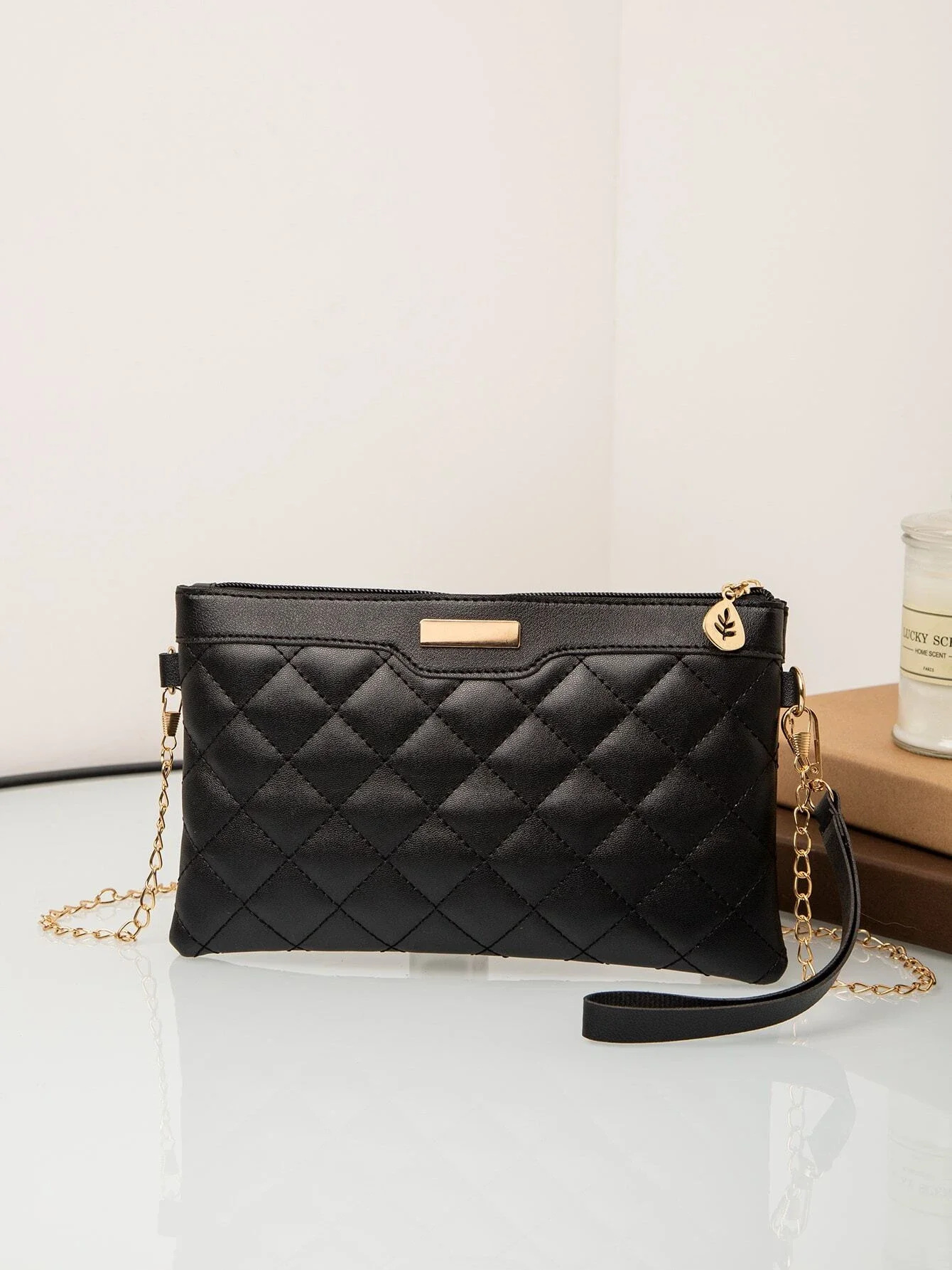 3.تبرز في عشاءك أو مأدبتك القادمة مع حقيبة الجسم المبطنة المذهلة باللون الأسود الكلاسيكي.يمنحها الشكل المربع والتفاصيل المعدنية مظهرًا أنيقًا وعصريًا، في حين أن الحجم الصغير يجعلها مثالية لحمل أغراضك الأساسية مع الحفاظ على مظهرها الرائع.