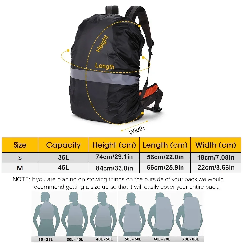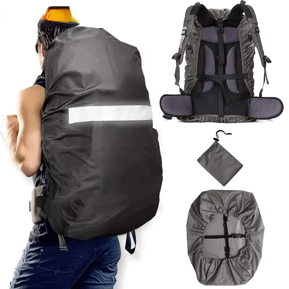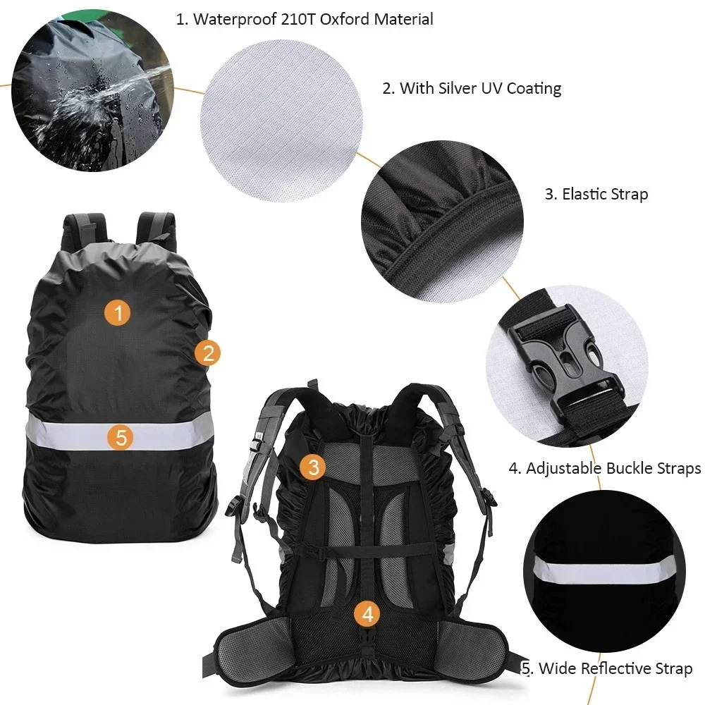 حقيبة الظهر غطاء المطر شريط عاكس مقاوم للماء غطاء حقيبة الظهر خفيفة الوزن، حزام مشبك متقاطع مضاد للانزلاق، المشي لمسافات طويلة، التخييم، ركوب الدراجات
