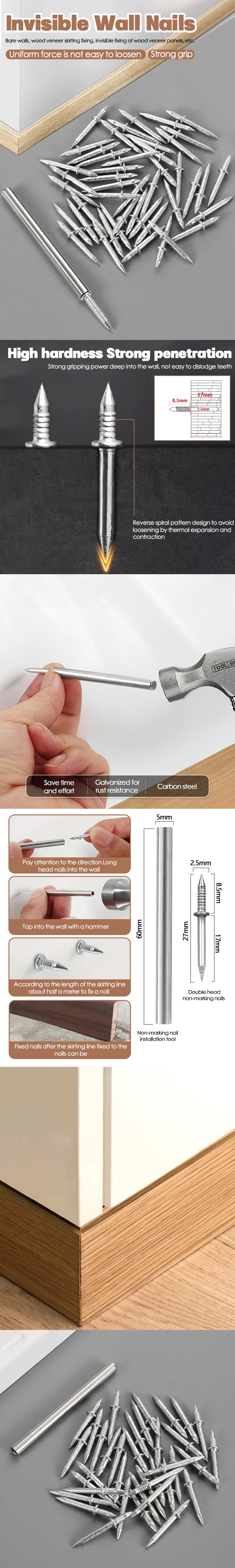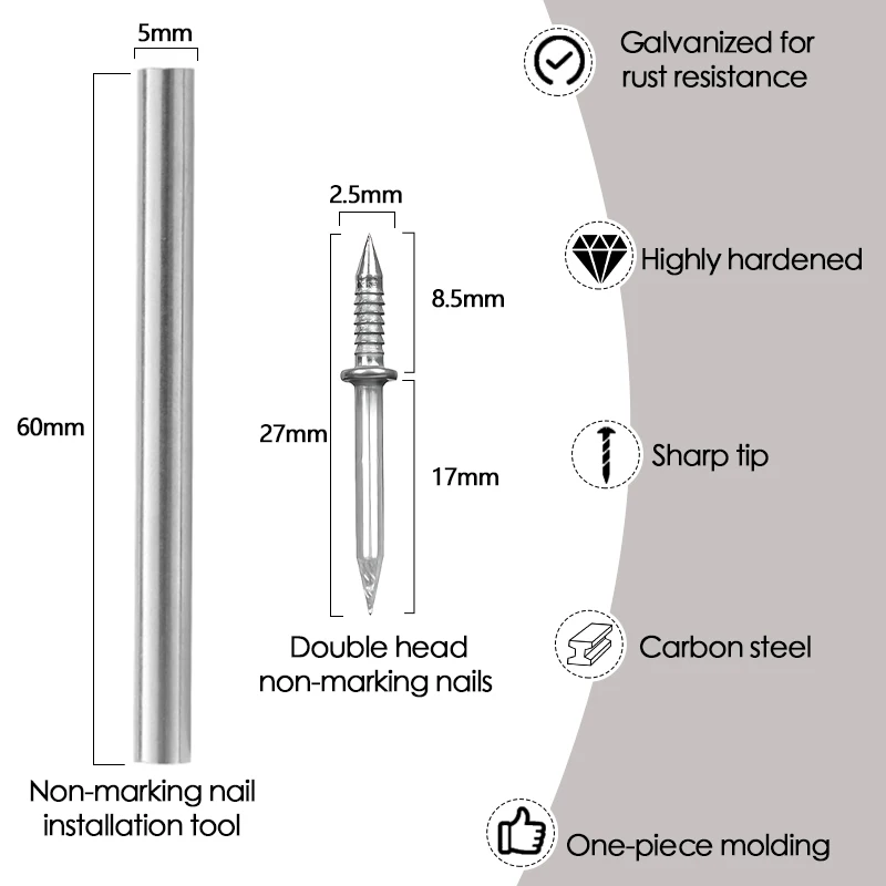 10-500 قطعة مجموعة مسامير مزدوجة الرأس أظافر سلسة مقاومة للصدأ للوحات الأساسية تثبيت قوي بدون علامات