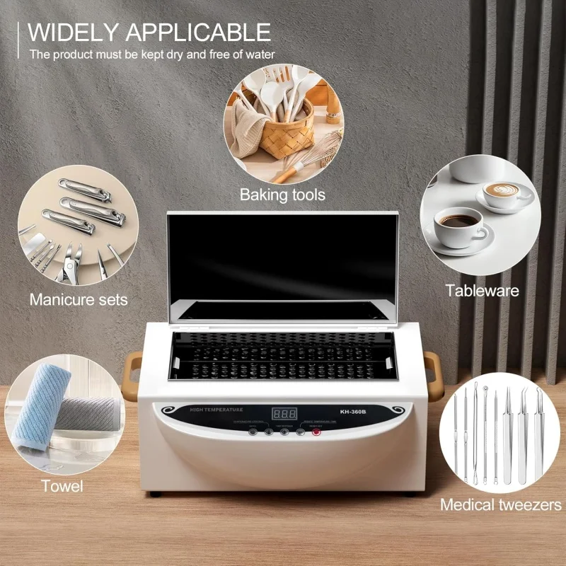 تعقيم فعال بدرجة حرارة عالية 200 درجة، توقيت ذكي، استخدام آمن ومريح.مساحة كبيرة والعديد من العناصر.