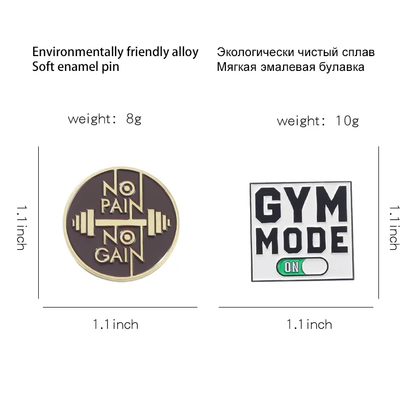 Fitness Gym Mold Enamel Pins Barbell Weight Lifting Bench Press Brooches Party Pin Backpack Lapel Sport Pins Gift Bulk Wholesale