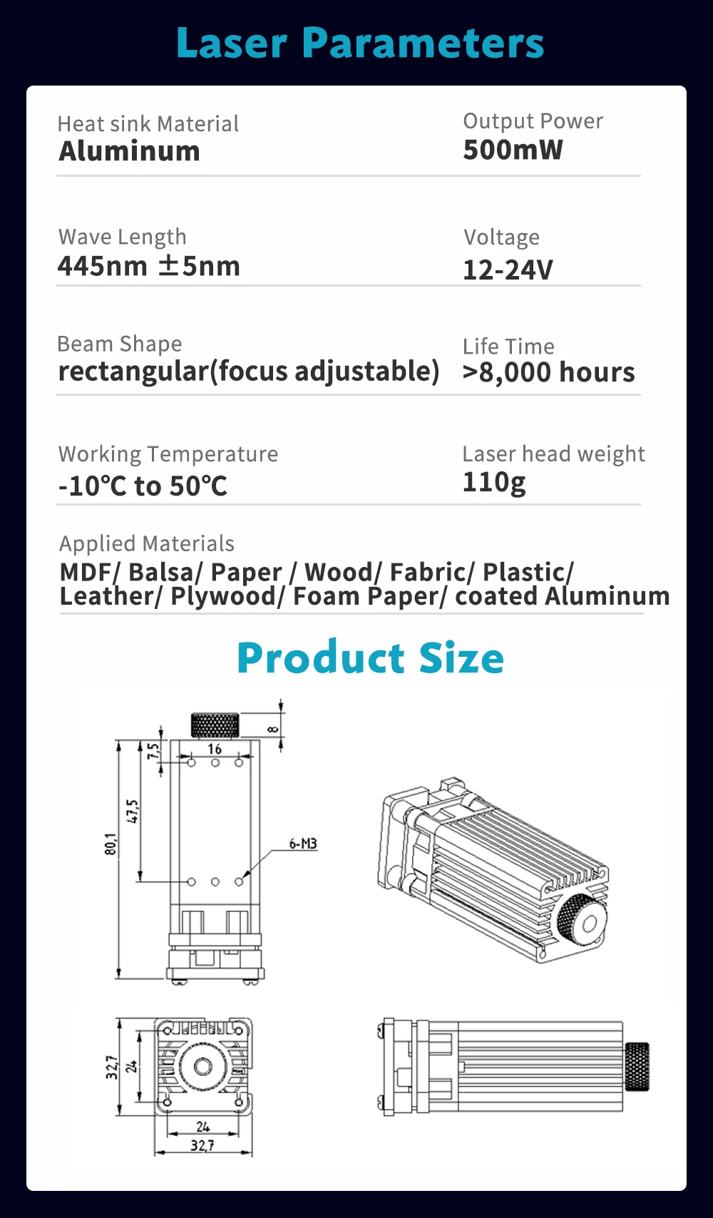 طابعة ثلاثية الأبعاد عالية الطاقة 12 فولت-24 فولت وحدة الحفر بالليزر رئيس أطقم التصميم المغناطيسي مع التركيز ل Ender-3 V2/3 برو/5/5 زائد