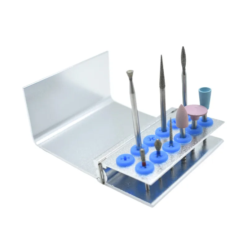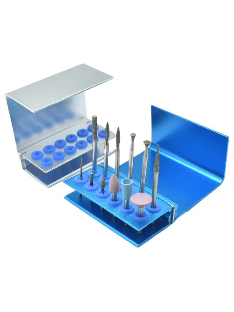 F065 حامل أزيز الأسنان عالي السرعة ومنخفض السرعة الأزيز لأداة العناية بالفم الطويلة تطهير صندوق معدني 12 فتحة