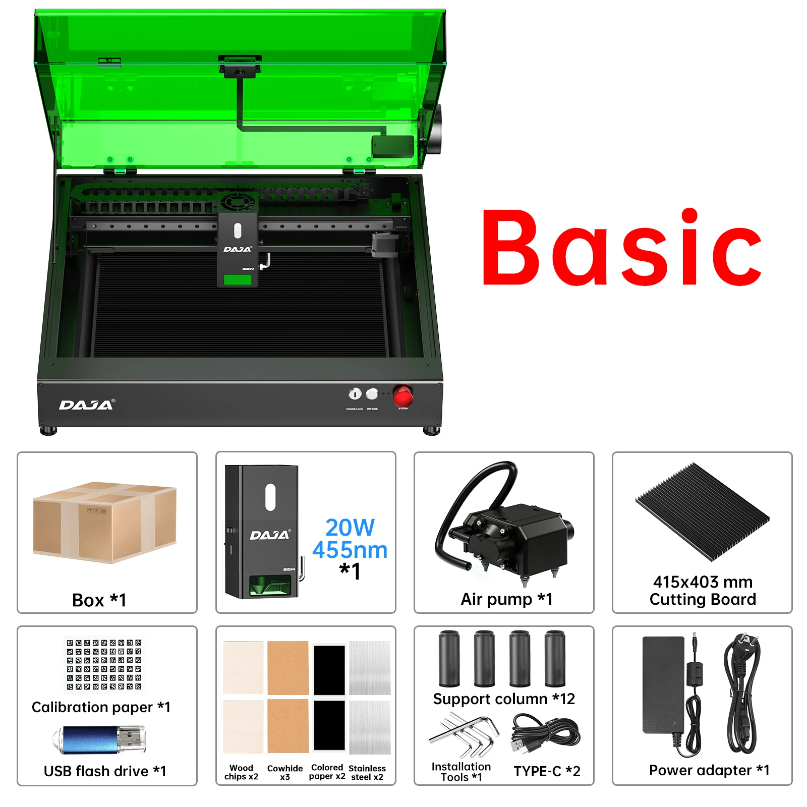 DAJA A8 آلة القطع بالليزر عالية الدقة الأعمال كفاءة آلة الحفر بالليزر للخشب المعادن الاكريليك البهلوانات الجلدية