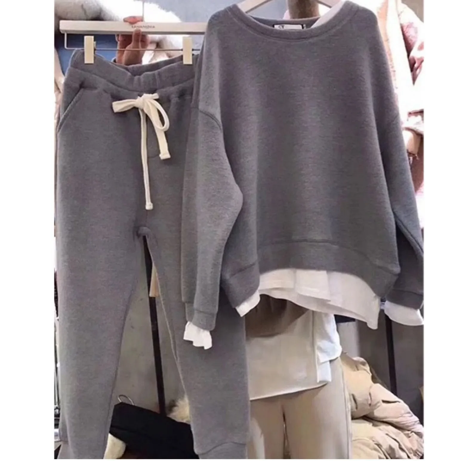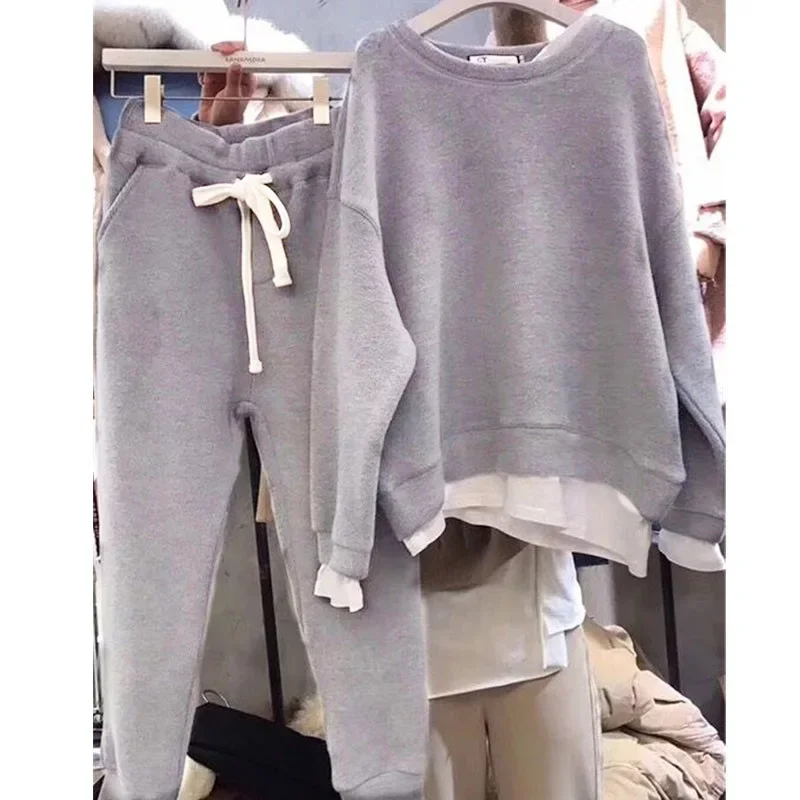 ربيع الخريف رقيقة فضفاضة البلوز المرأة هونغ كونغ نمط قطعتين مجموعة المرقعة خفيفة الوزن مريحة الزي الإناث