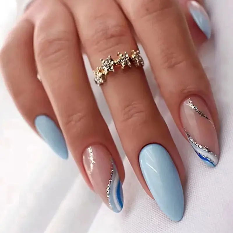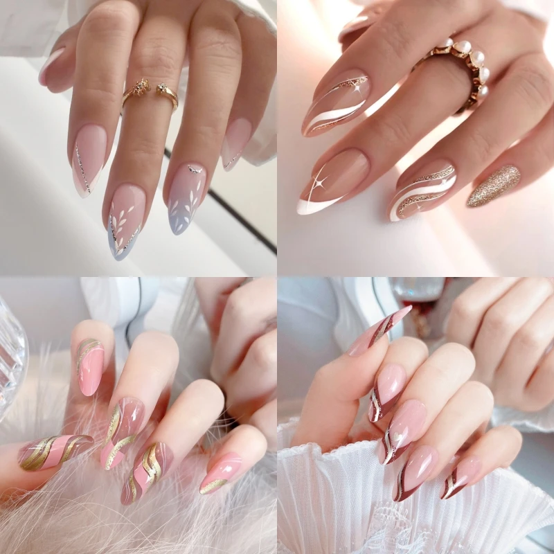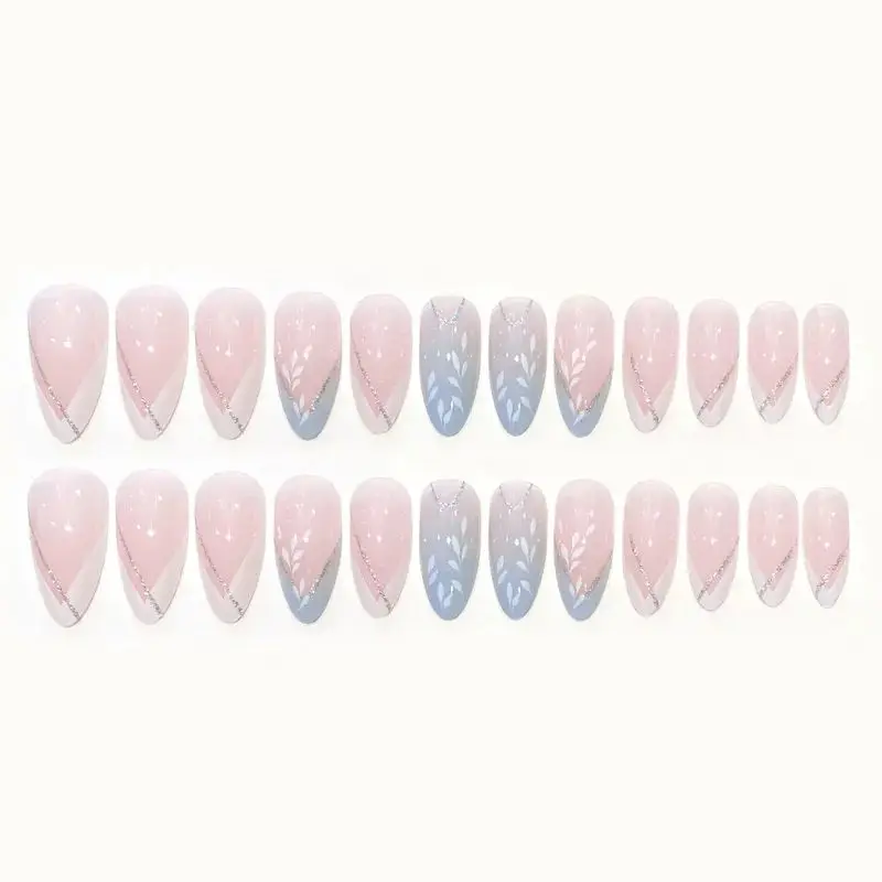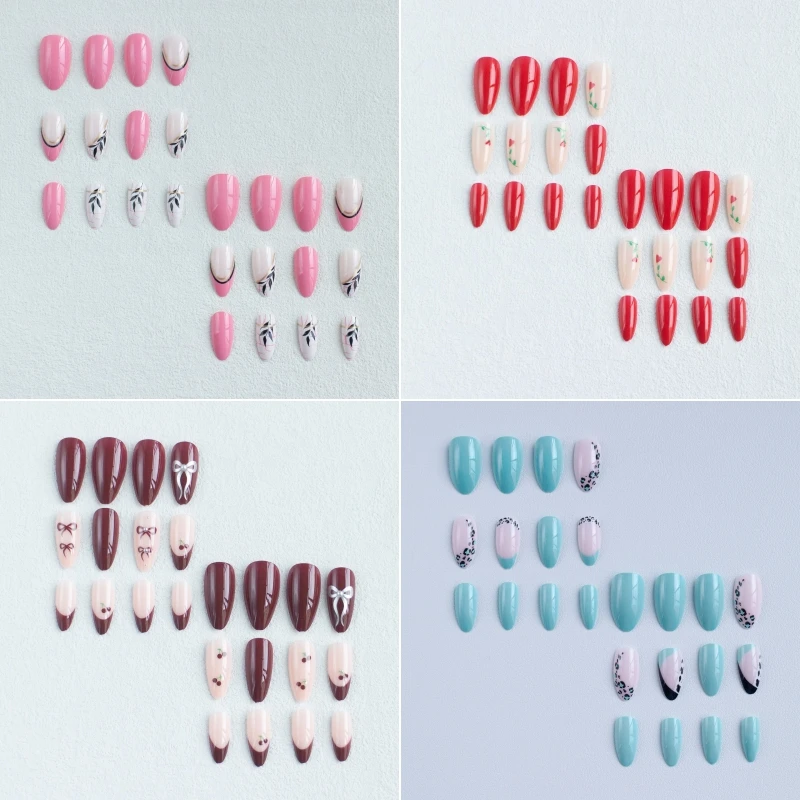 1. 24 صمغ بغطاء كامل على أطراف تزيين أظافر زائفة.