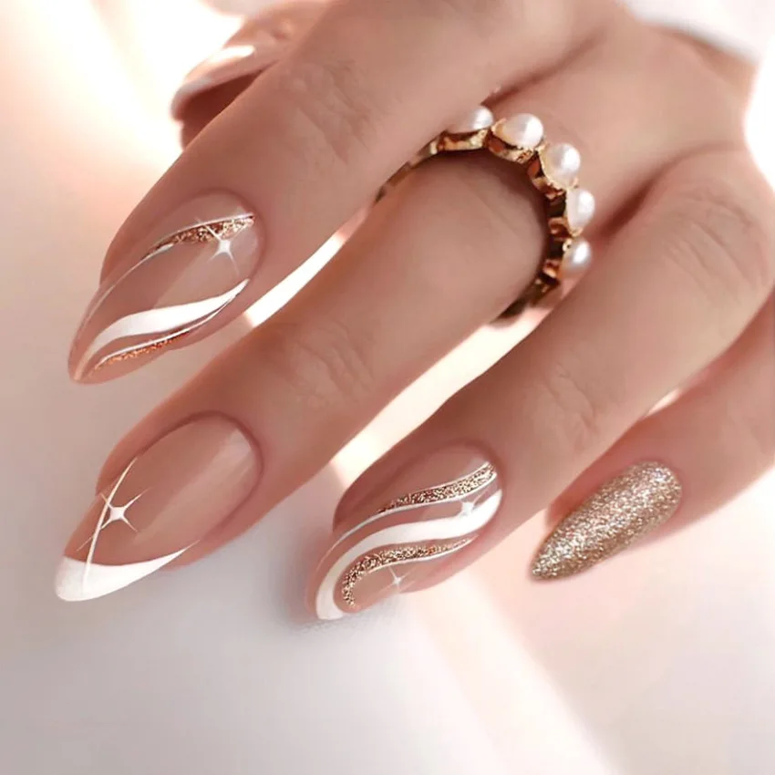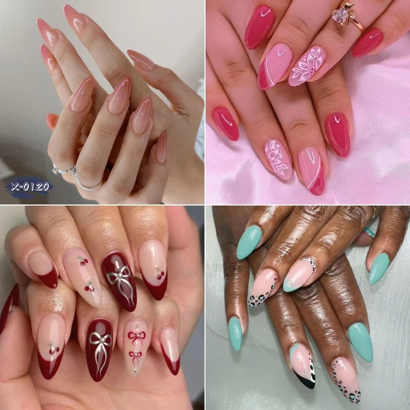 أظافر اصطناعية بالضغط الفرنسي ، لوز متوسط ، بيضاوي ، غطاء كامل ، أظافر مزيفة ، مانيكير ، 24 *