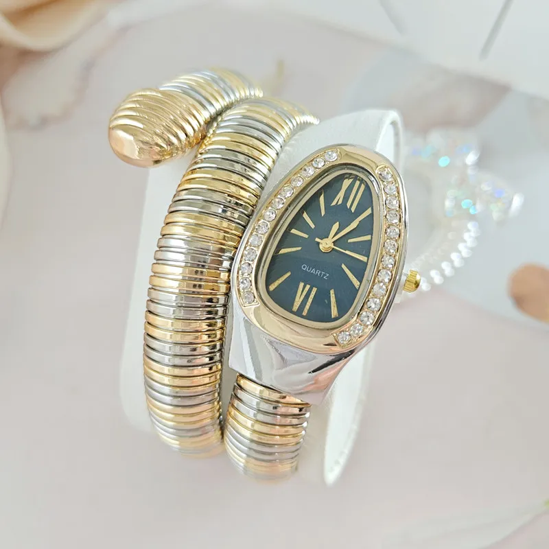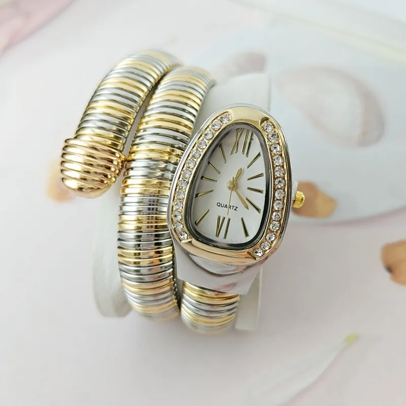 دروبشيبينغ المرأة كوارتز ساعة الأفعى رئيس الساعات لا شعار الطباعة الفاخرة هدية الأزياء الماس سوار ساعات المعصم