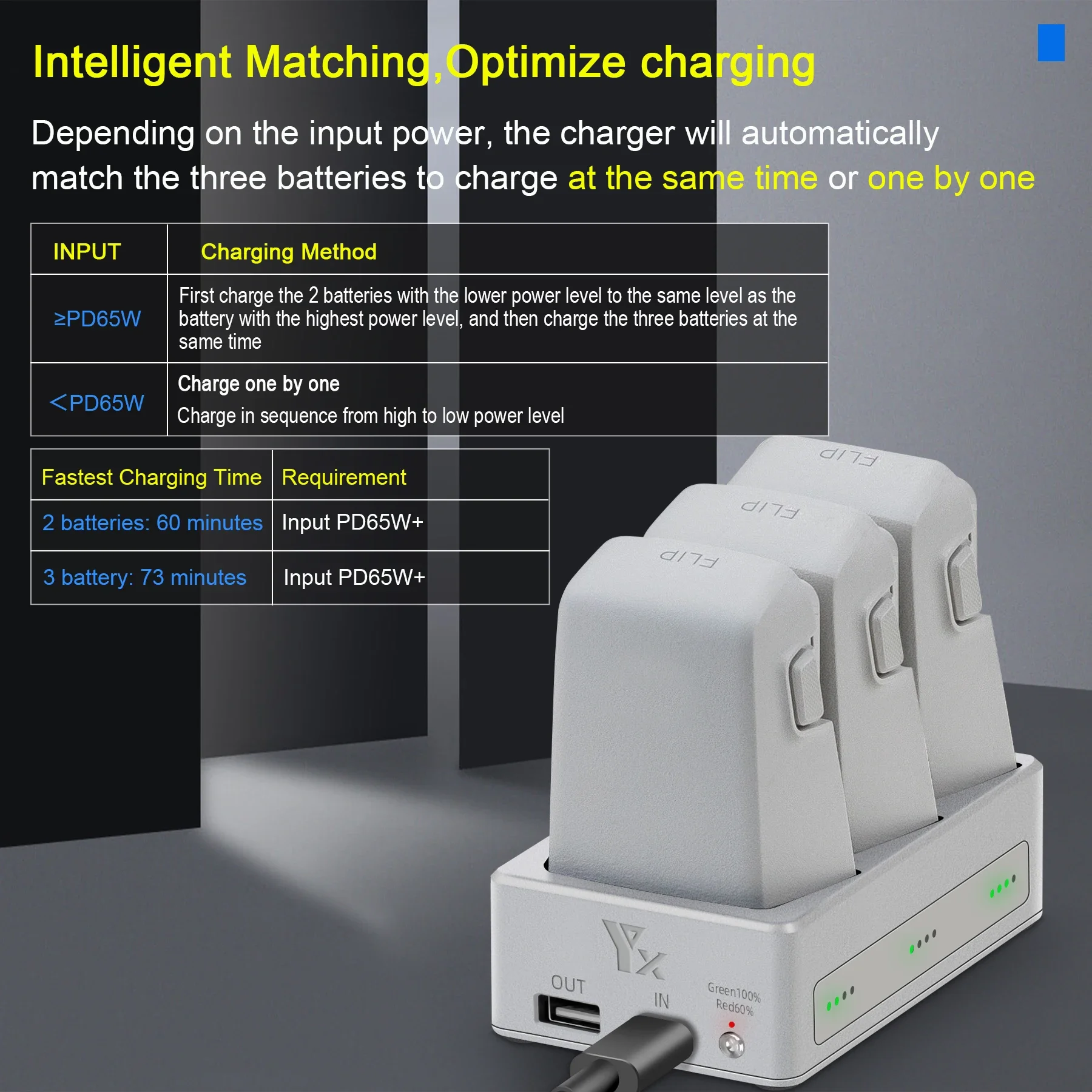 لشاحن DJI FLIP 3 اتجاهات لشاحن تخزين البطارية مدير البطارية