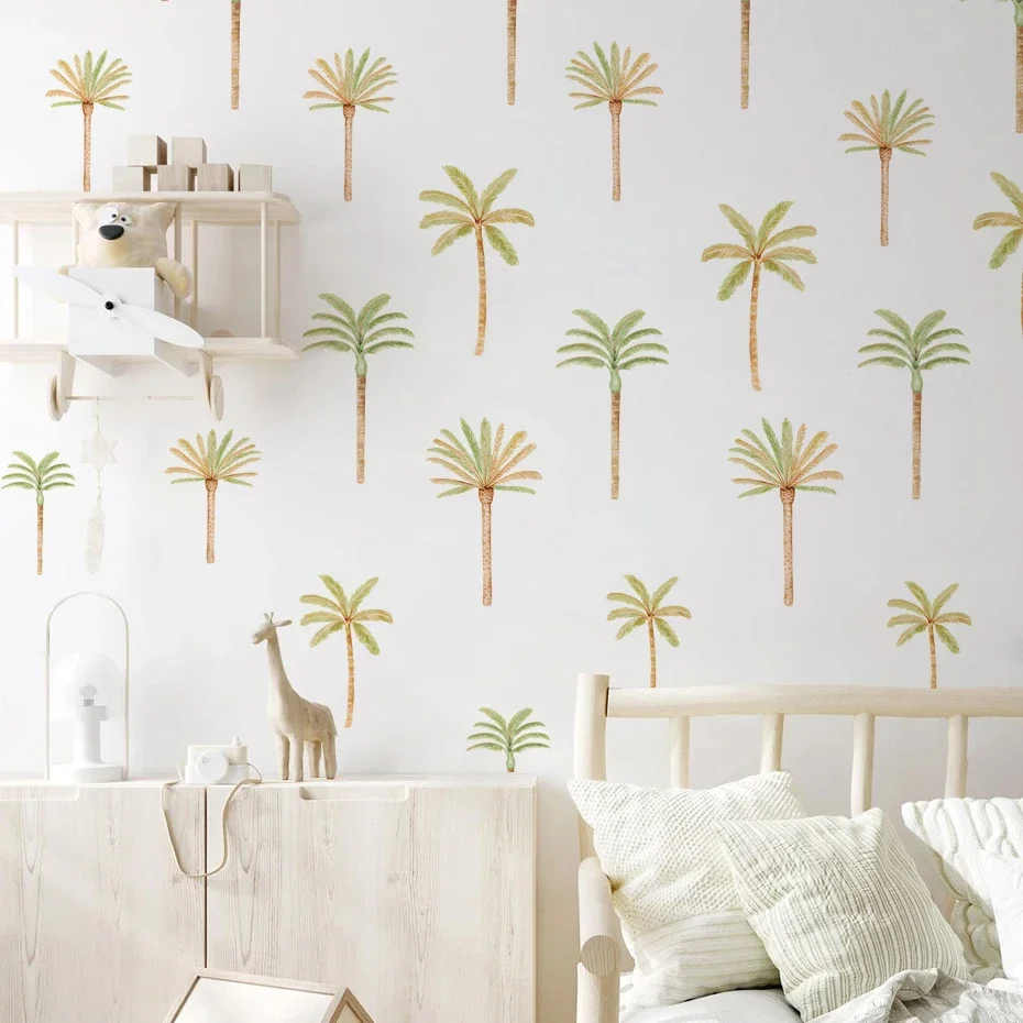 بوهو شجرة نخيل جوز الهند الجدار ملصق للأطفال طفل الفتيات الفتيان غرفة الحضانة جدار ملصقات فنية الفينيل غرفة نوم الاطفال ديكور المنزل توهج