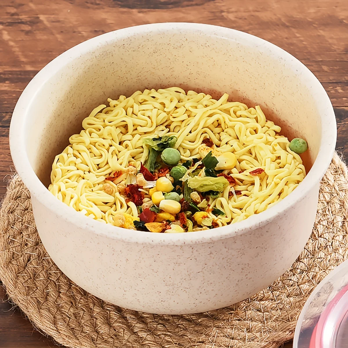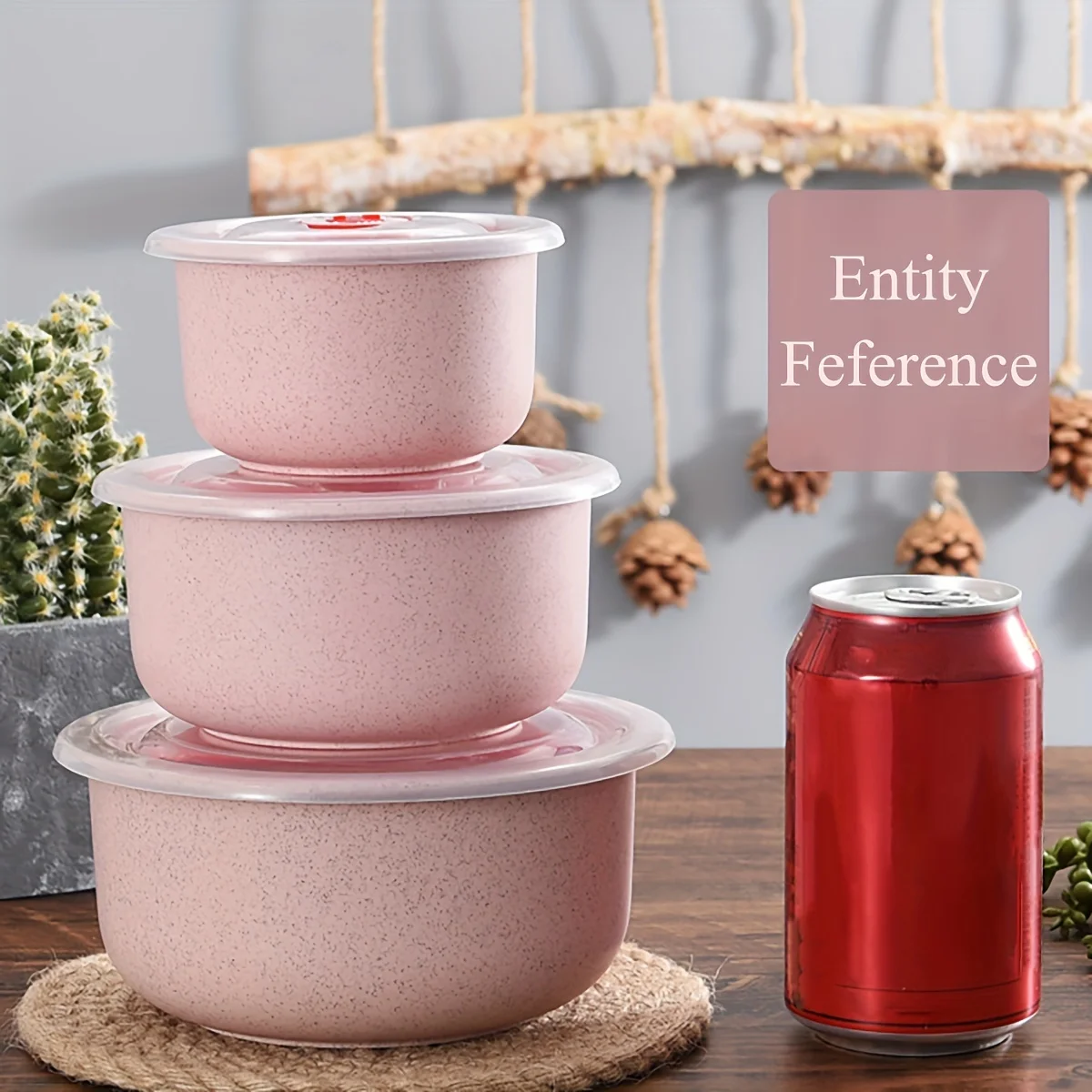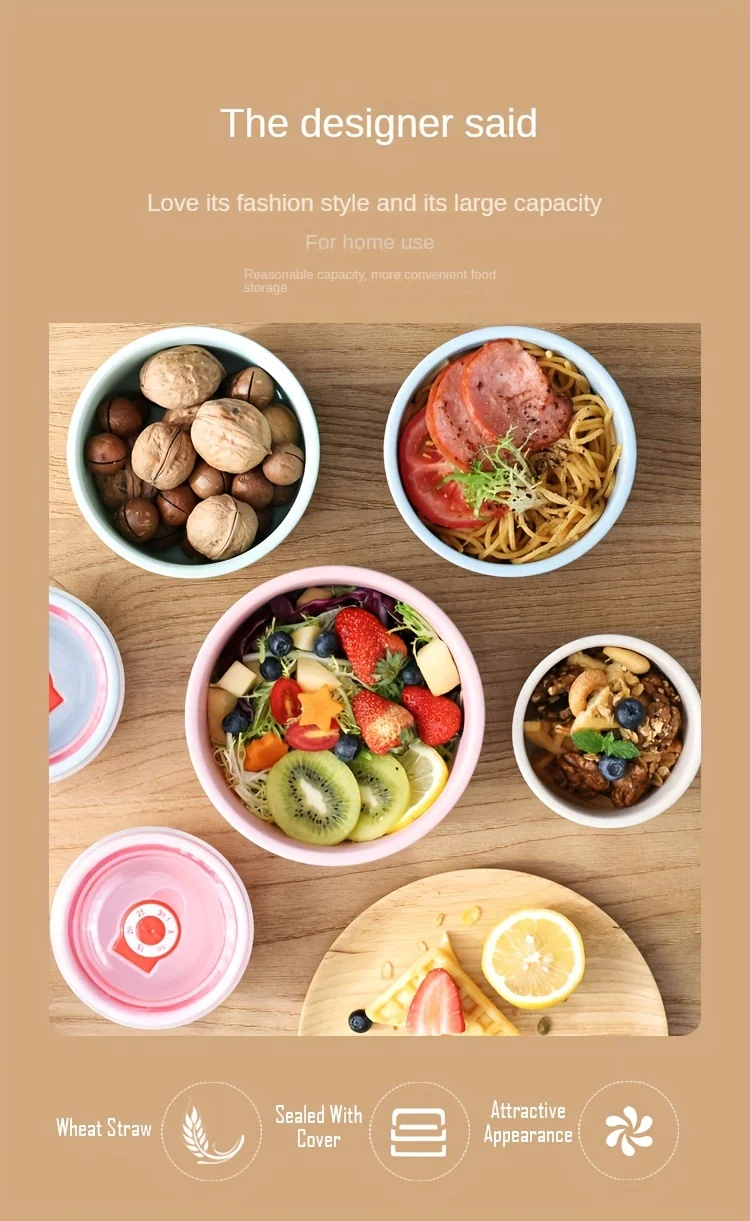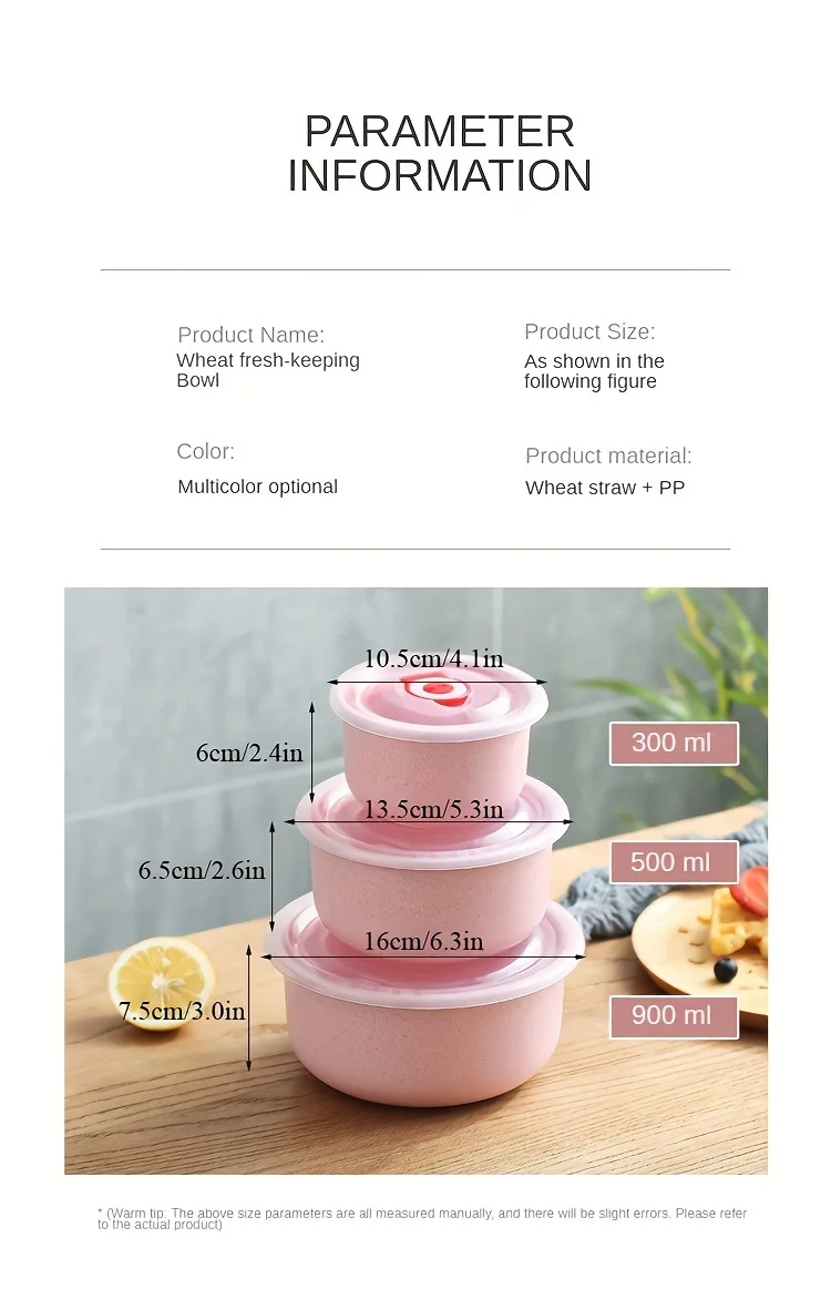 3Set Wheat Straw Freshness Bowl Plastic Microwave Oven Soup Bowl Crisper Practical Bowl round with Lid Lunch Box Salad Bowl