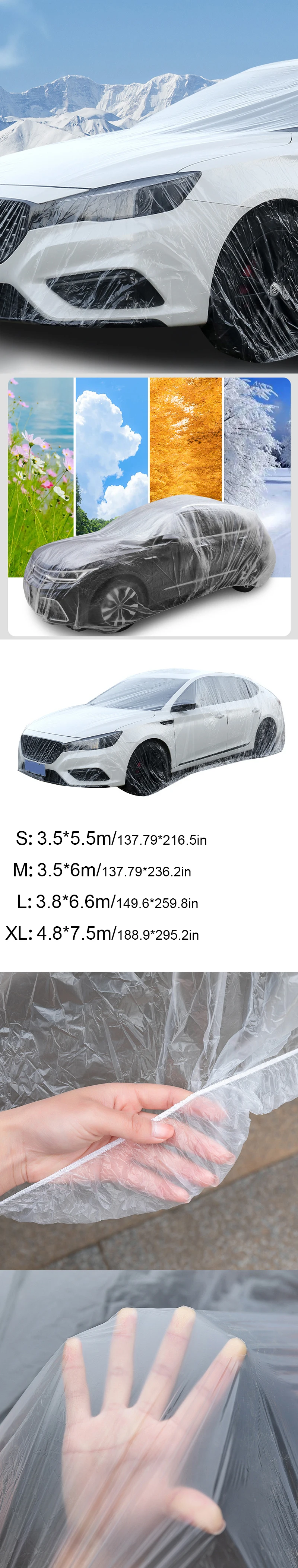 غطاء شفاف لملابس السيارة للاستعمال مرة واحدة غطاء سيارة شفاف مقاوم للغبار مقاوم للمطر غطاء سيارة بلاستيكي PE مقاوم للمطر