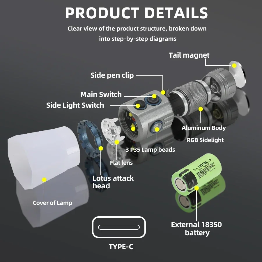 USB قابلة للشحن RBG مصباح ليد جيب 2000LM قوية صغيرة EDC فانوس تكتيكي باستخدام بطارية 18350 التخييم في الهواء الطلق الصيد الشعلة