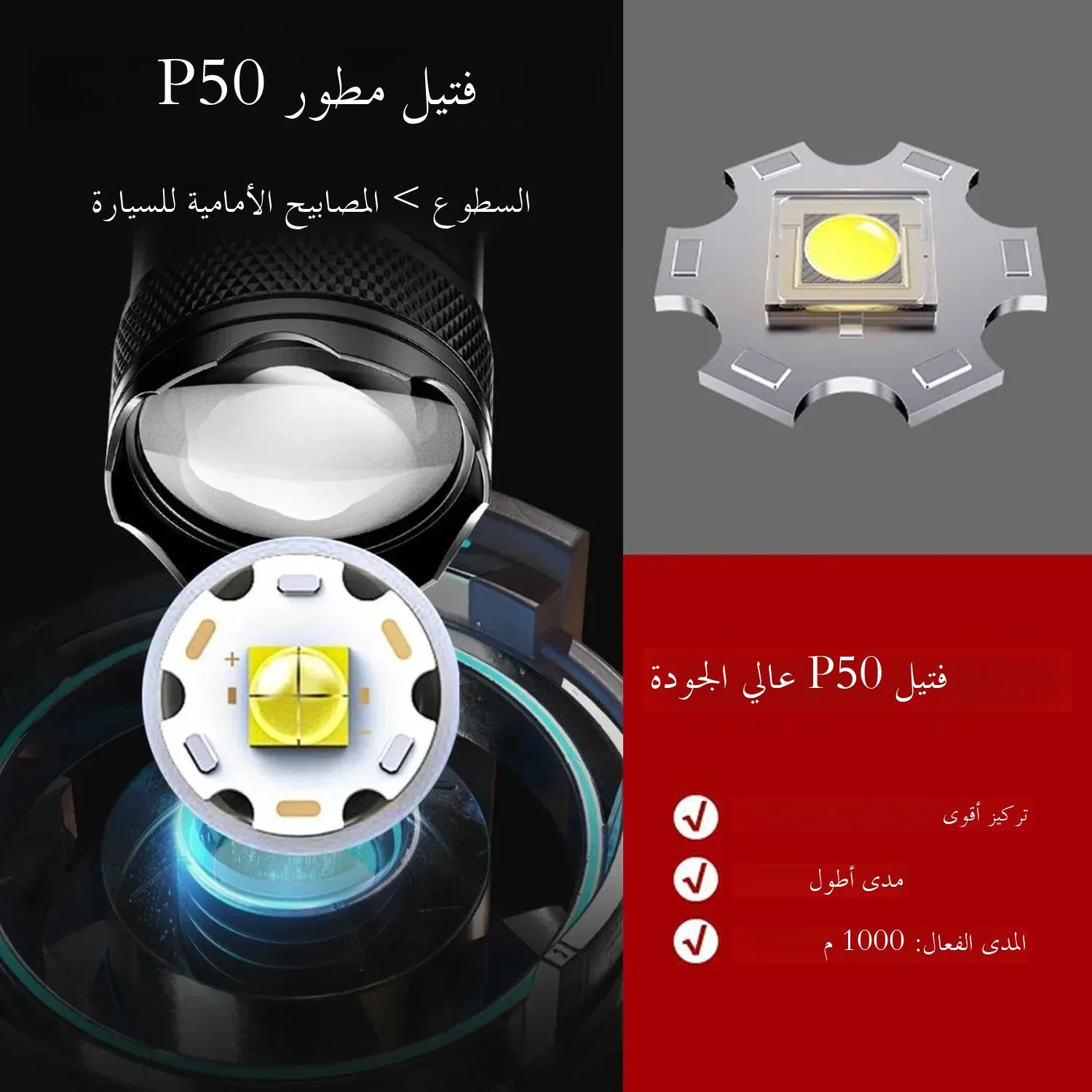 سطوع فائق 2000 لومن: يوفر فتيل LED رباعي النواة P50 إضاءة أكثر سطوعًا بنسبة 500% من المصابيح الأمامية للسيارة