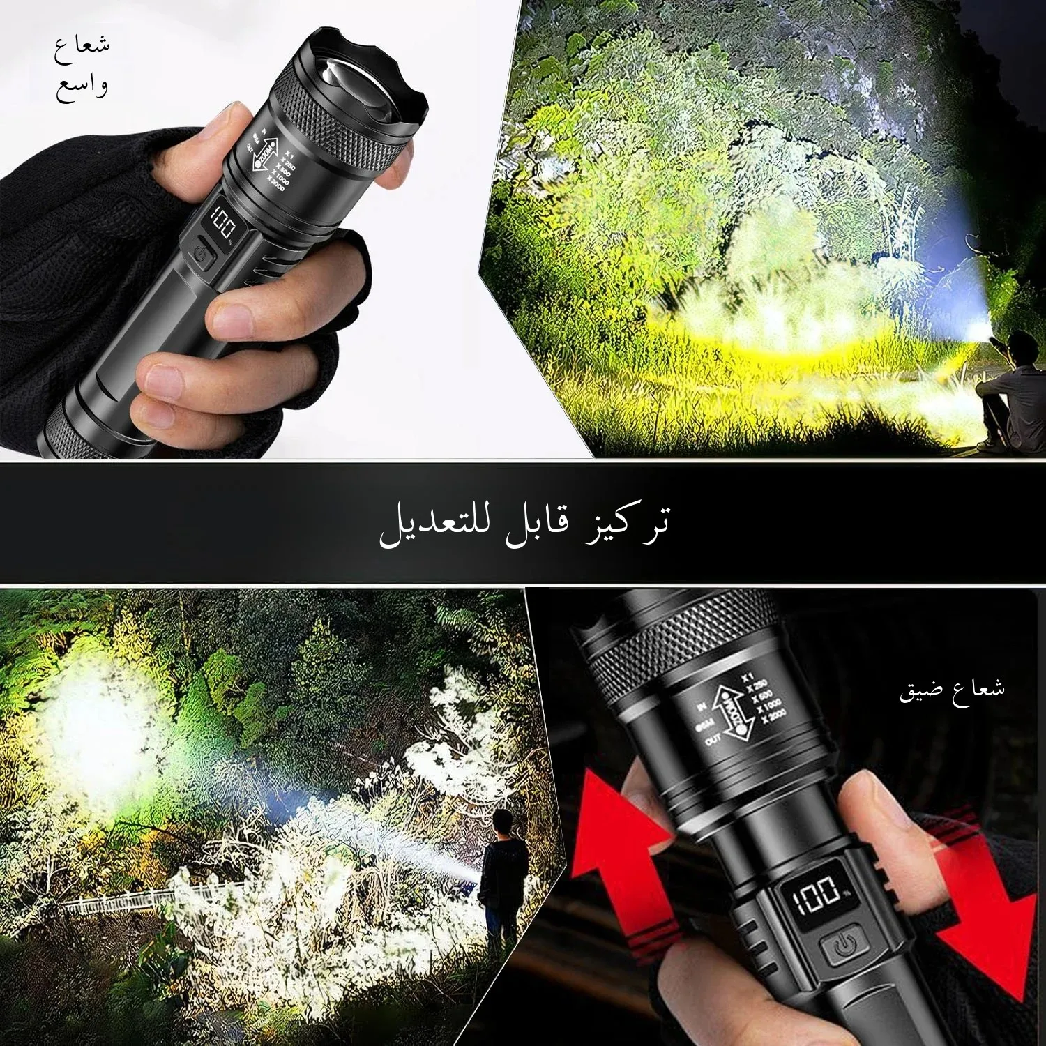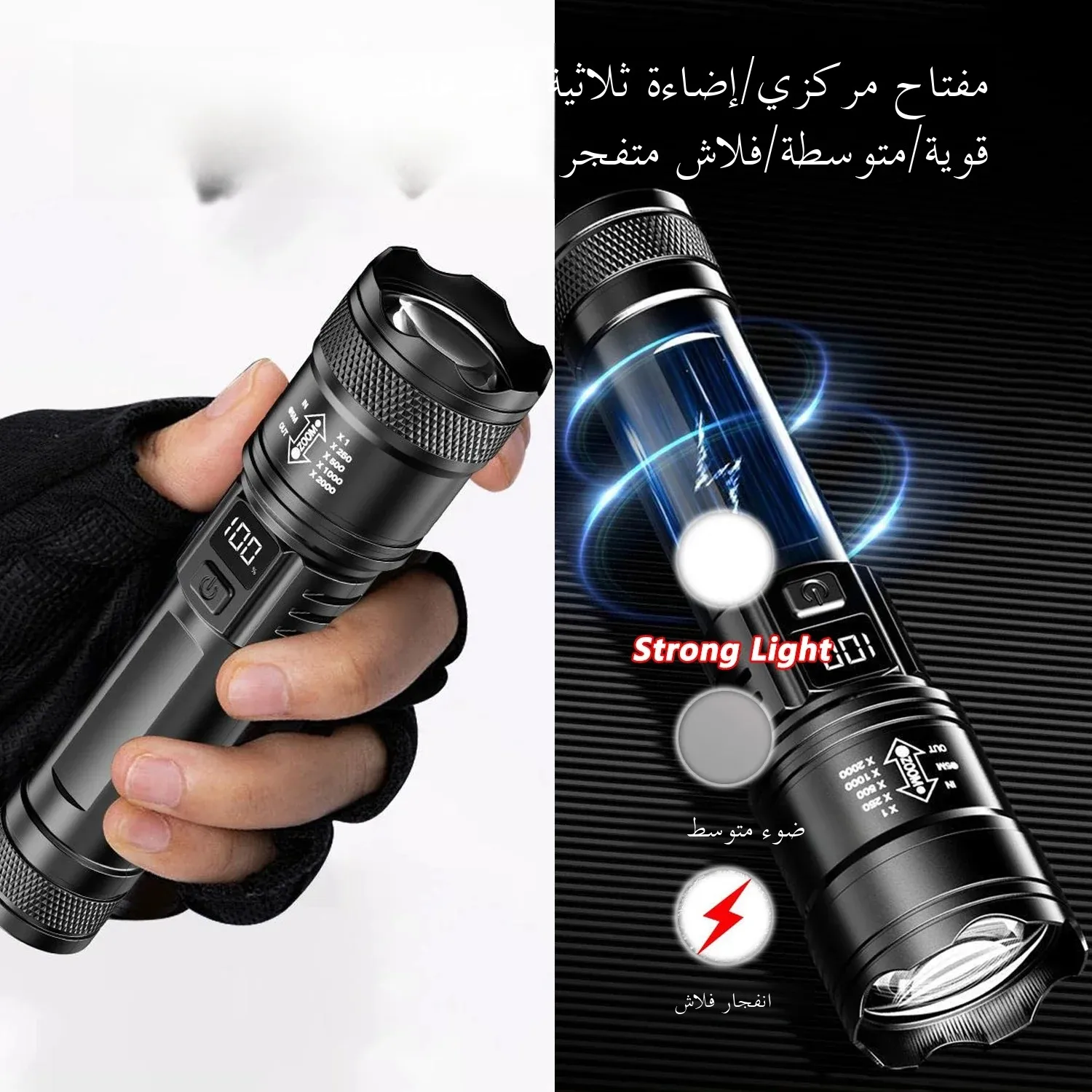 3 أوضاع + تكبير تلسكوبي: أوضاع قوية/ضعيفة/فلاش مع شعاع قابل للتعديل (ضوء كشاف إلى كشاف 3640 قدمًا)