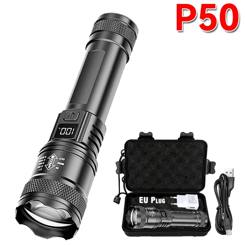 مصابيح ليد عالية القوة 2000LM شعلة تكتيكية مع ضوء عرض USB شحن التخييم الصيد في حالات الطوارئ التكبير فانوس