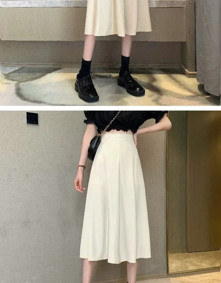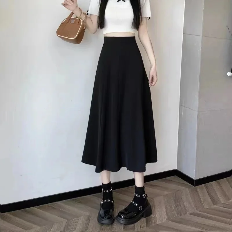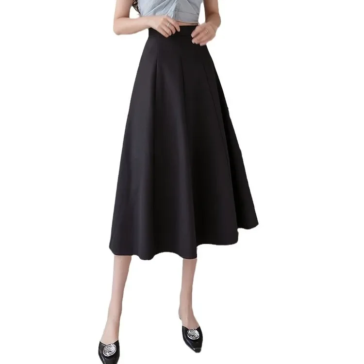 متوسط طول الربيع الصيف الكمثرى على شكل المرأة دعوى تنورة عالية الخصر ألف خط مظلة تنورة ثنيات حركة كبيرة فستان طويل