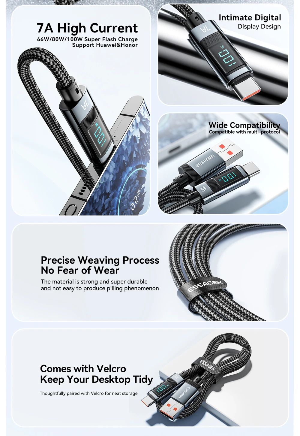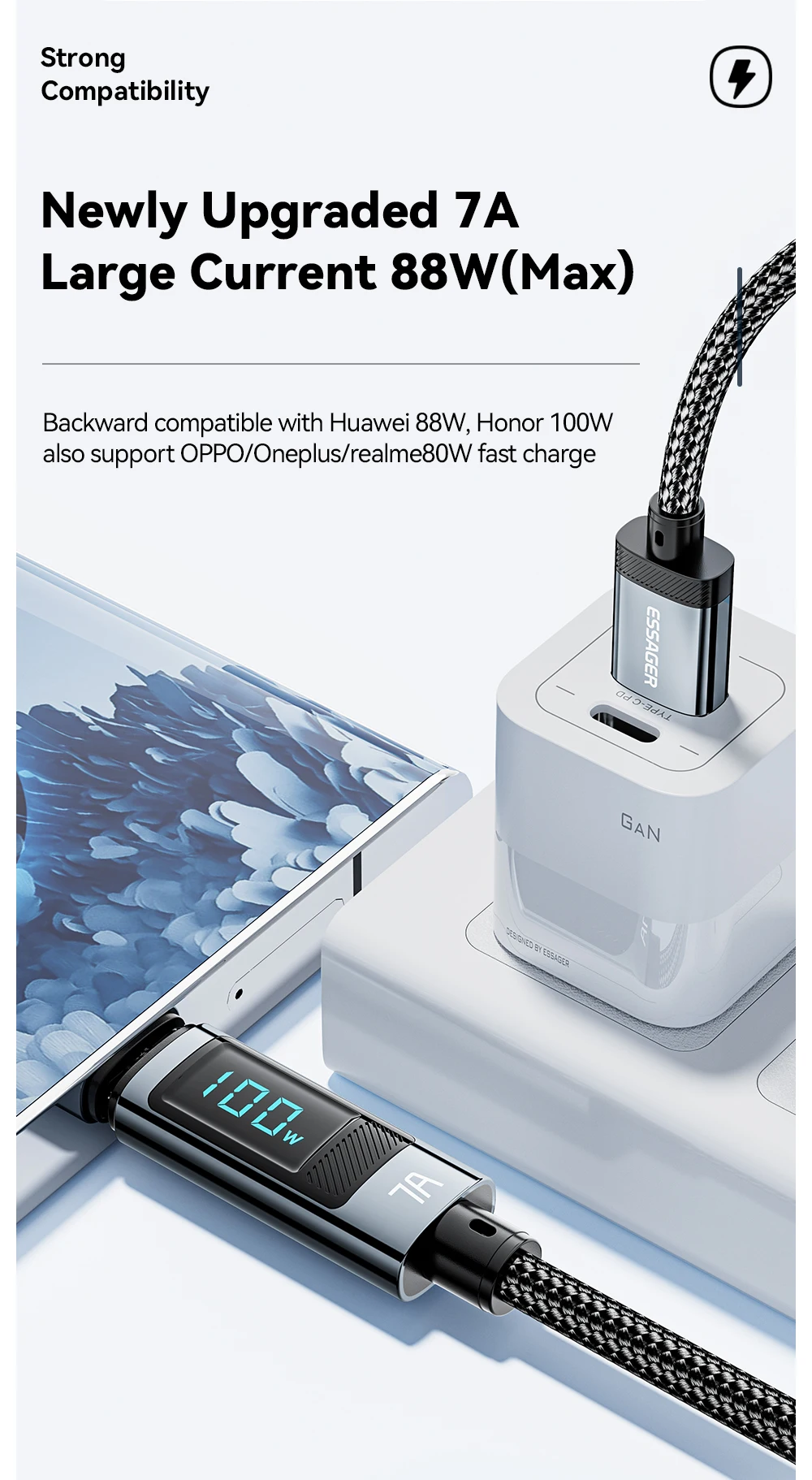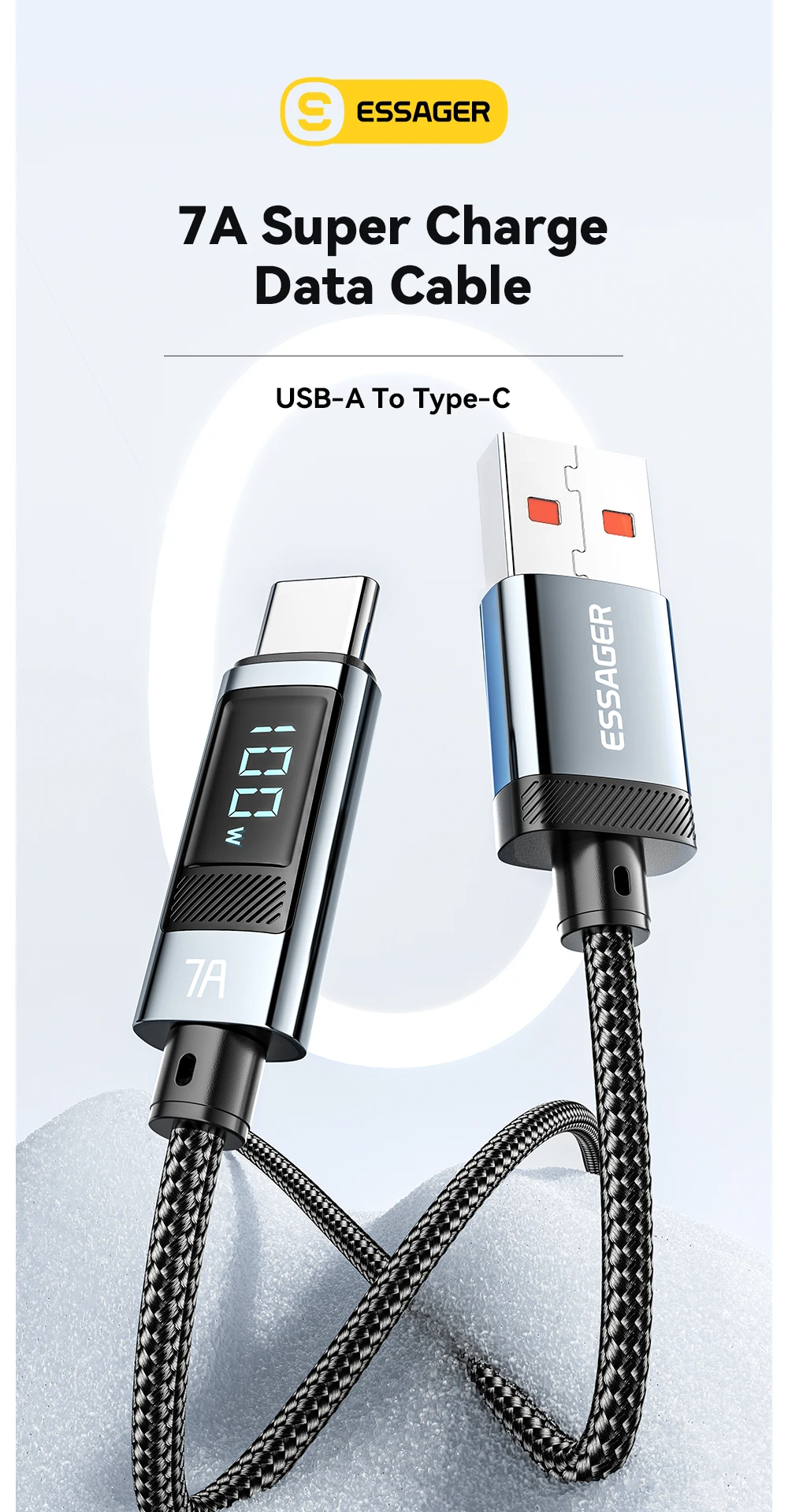 Essager 7A USB نوع C كابل 100 واط USB C شاحن البيانات ل Realme هواوي P40 30 برو 66 واط شحن سريع سلك الحبل سامسونج Xiaomi Poco