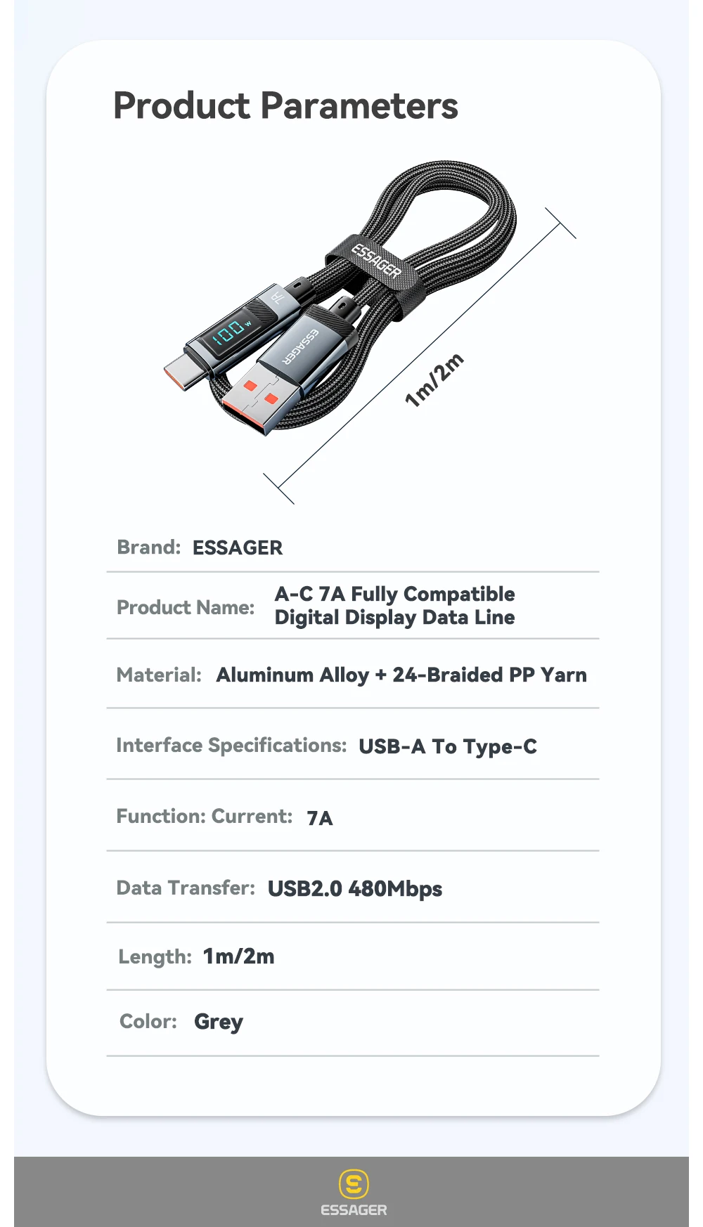 العلامة: اسيجراسم المنتج: كابل بيانات ESSAGER AC 7A متوافق تمامًاالحالي: 7A 100 واط [الحد الأقصى]معدل الإرسال: 480 ميجابت في الثانيةواجهة الإدخال: USB...