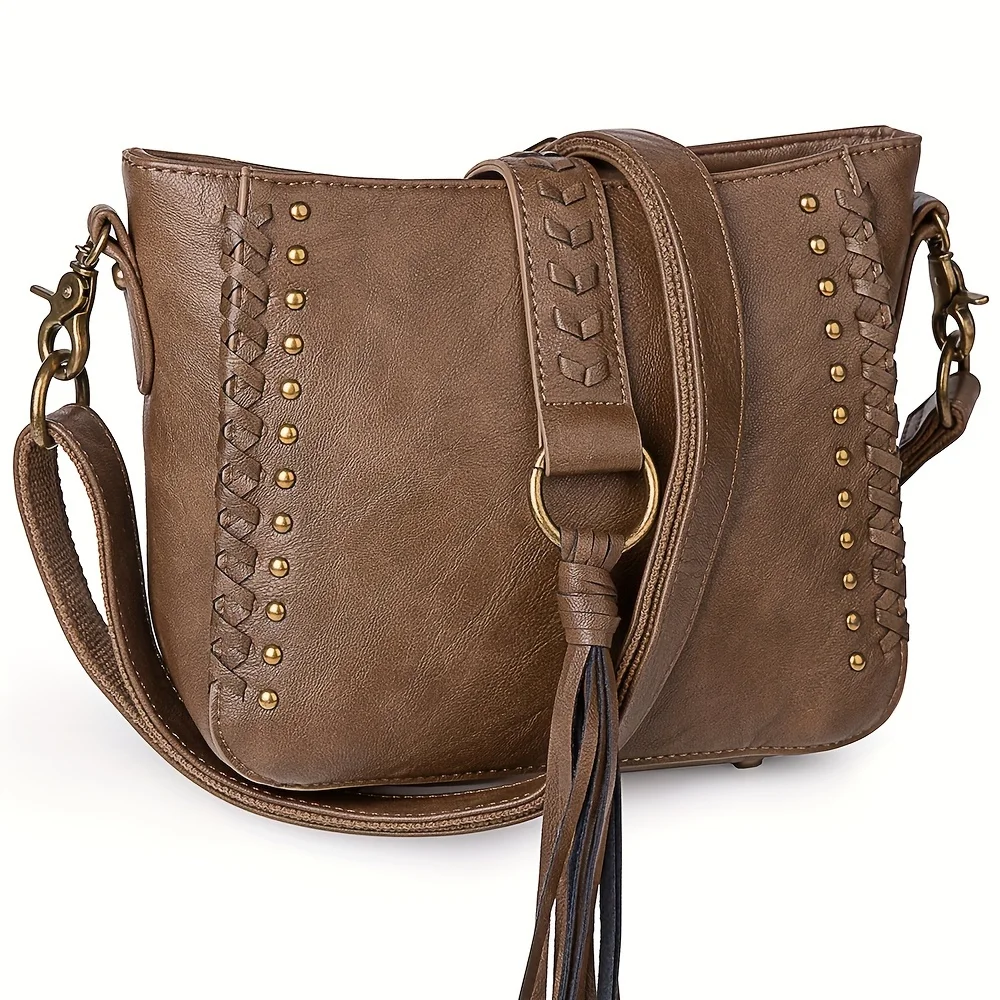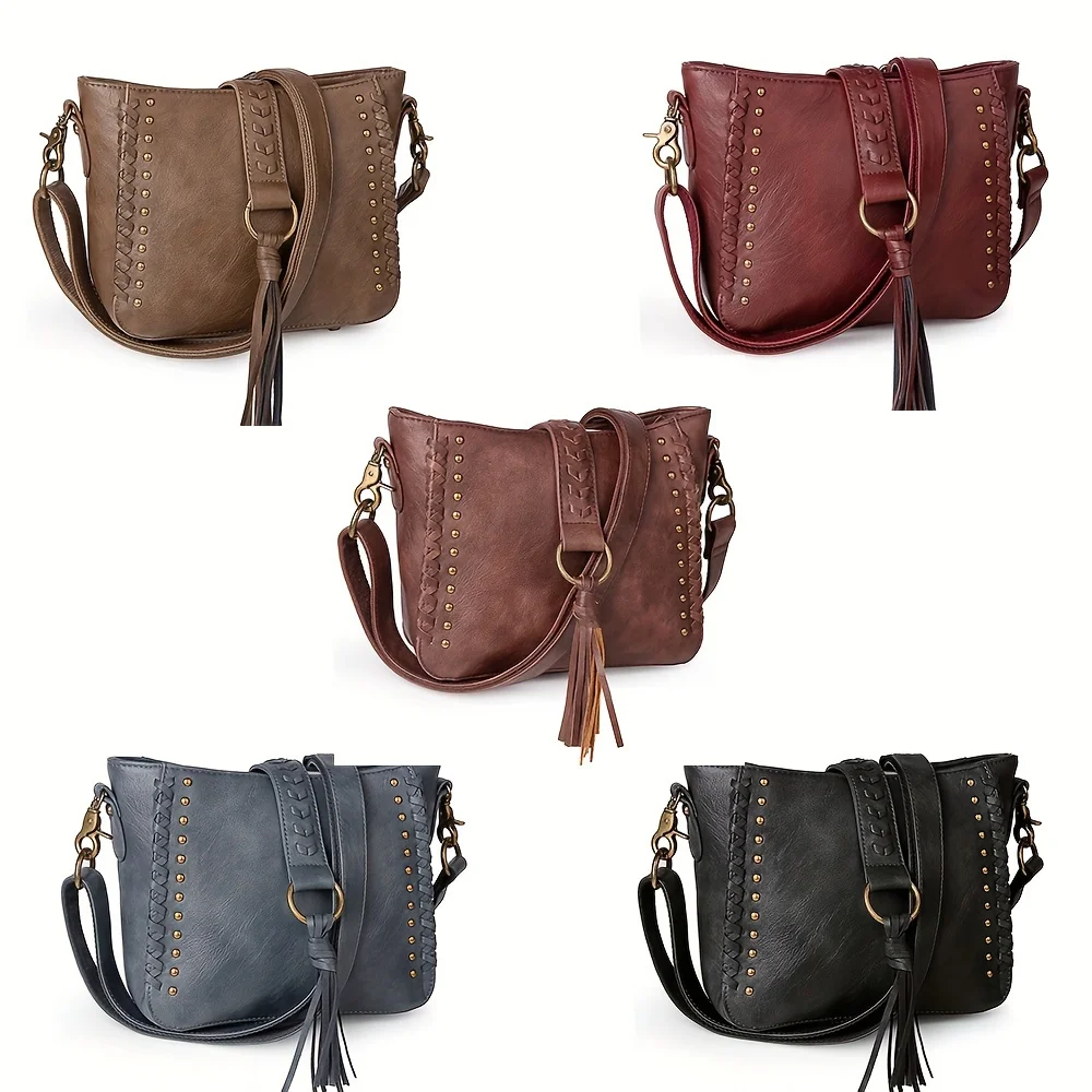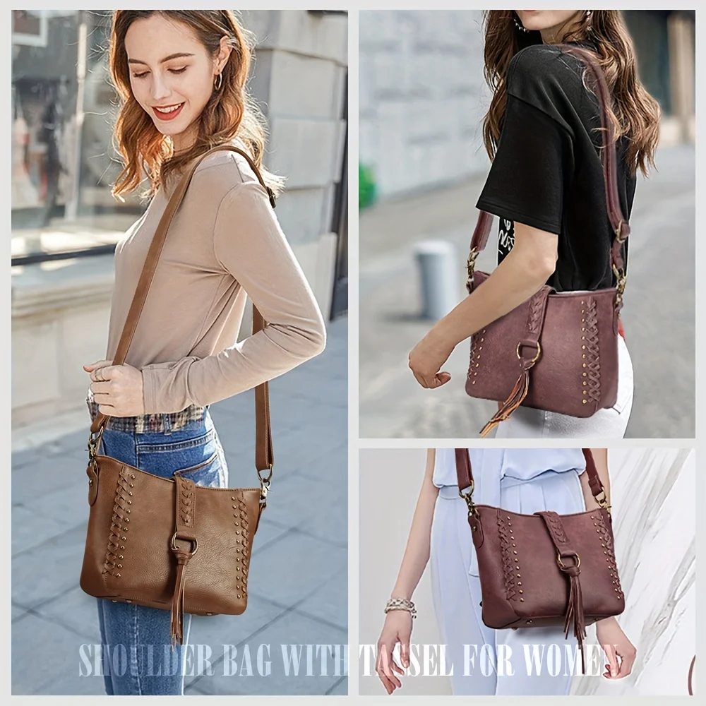 حقائب كروس أنيقة من جلد البولي يوريثان - محافظ كتف عصرية ومزينة بشراشيب ومتعددة الاستخدامات للنساء