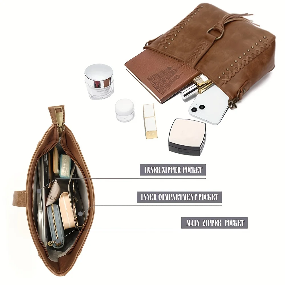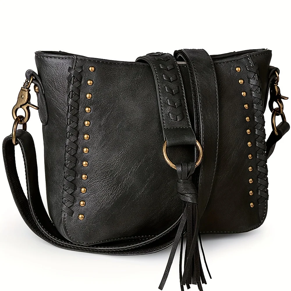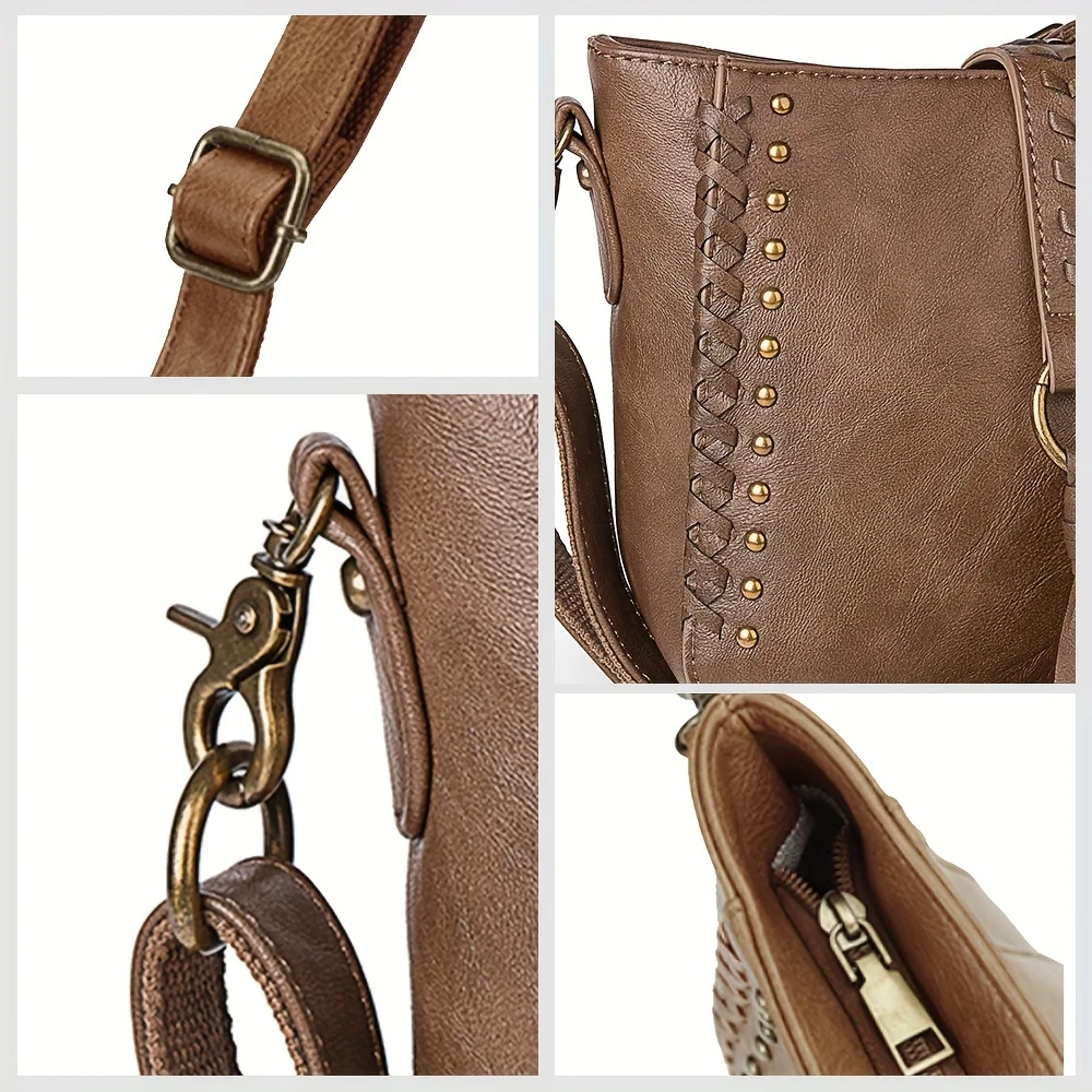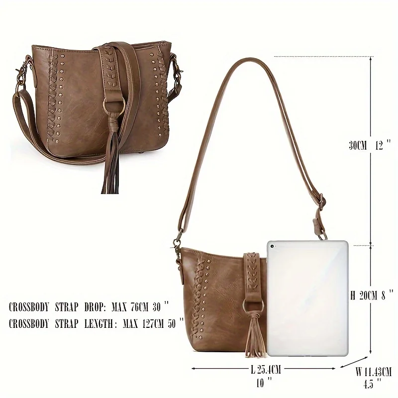 حقائب كروس أنيقة من جلد البولي يوريثان - محافظ كتف عصرية ومزينة بشراشيب ومتعددة الاستخدامات للنساء