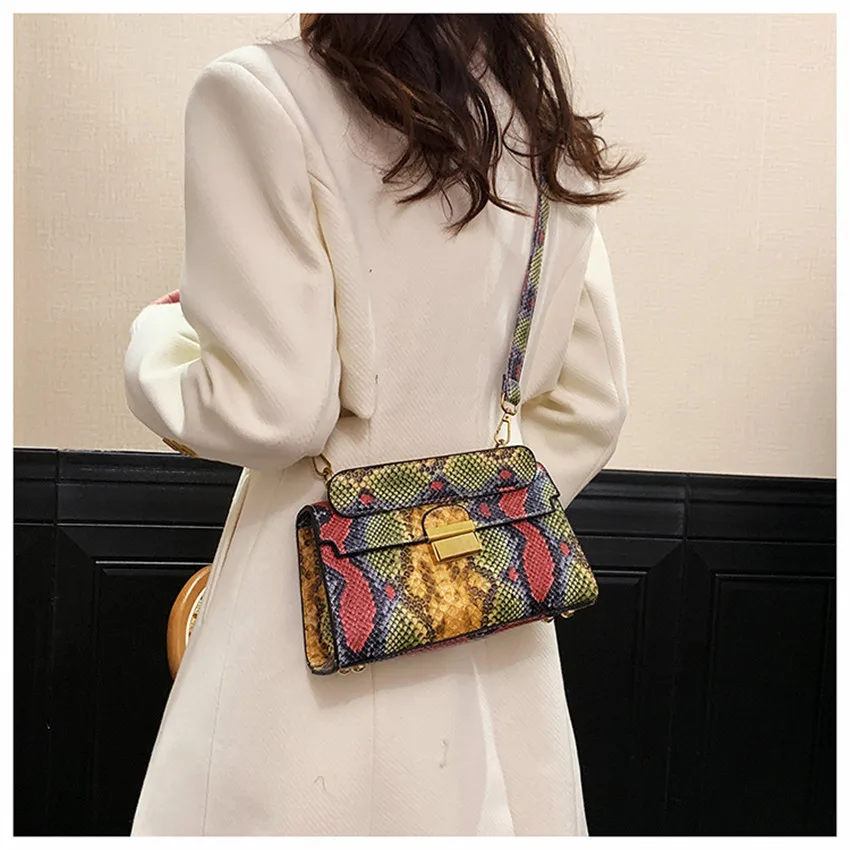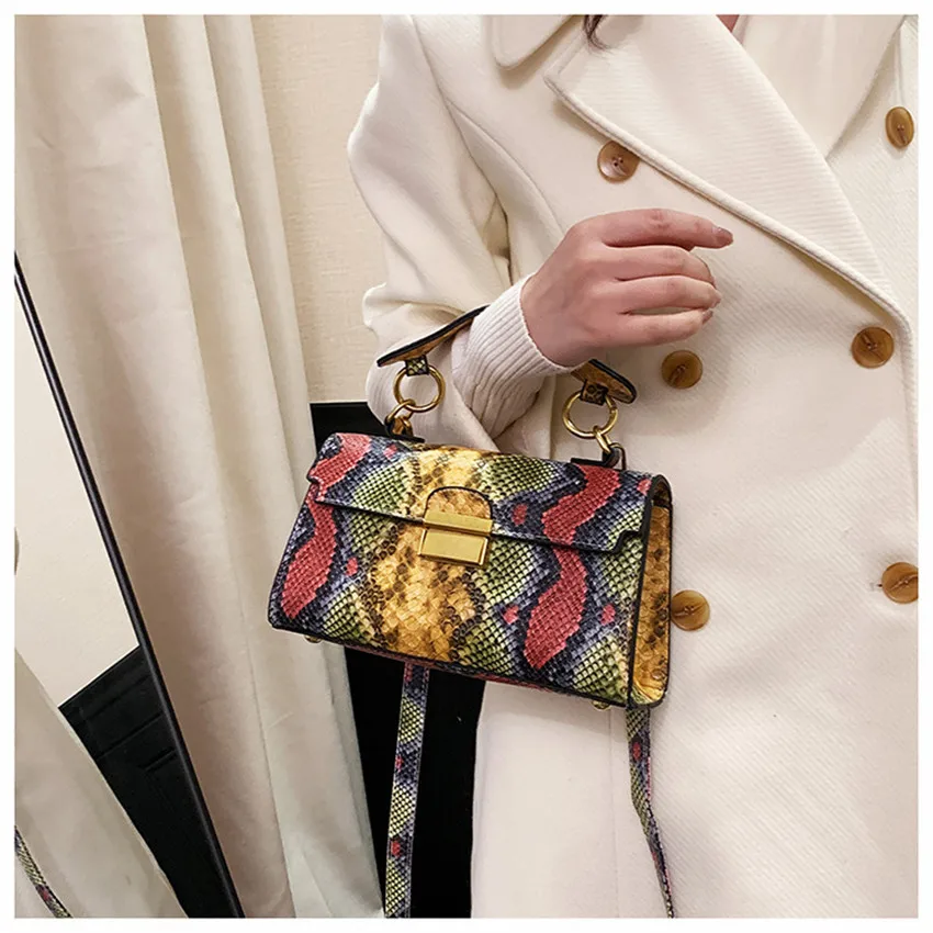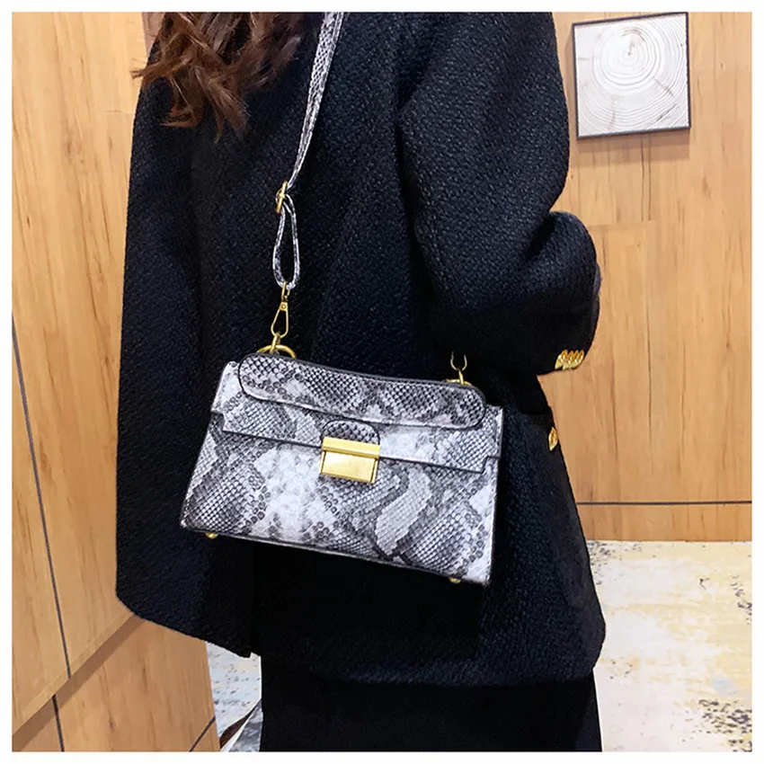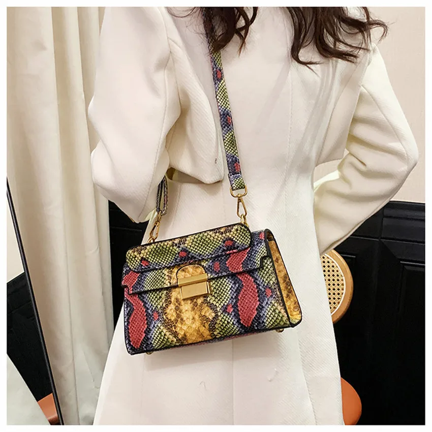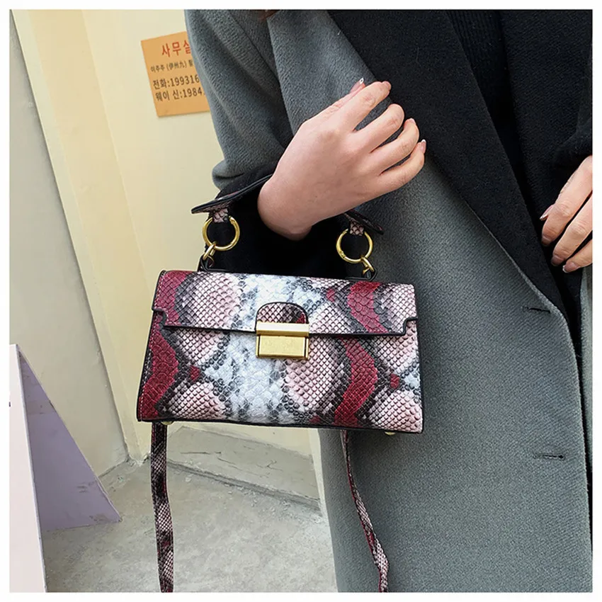 العلامة التجارية الجديدة الفاخرة مصمم حقيبة يد المرأة الأفعى نمط الجلود Crossbody المحافظ موضة حقيبة كتف صغيرة مربع بولسا دي أومبرو