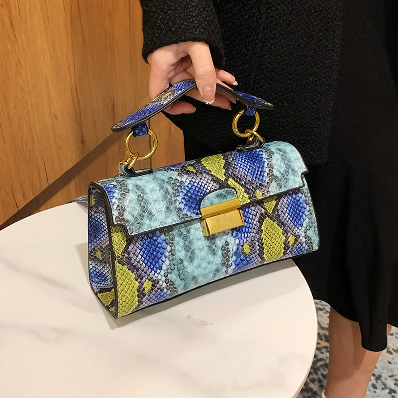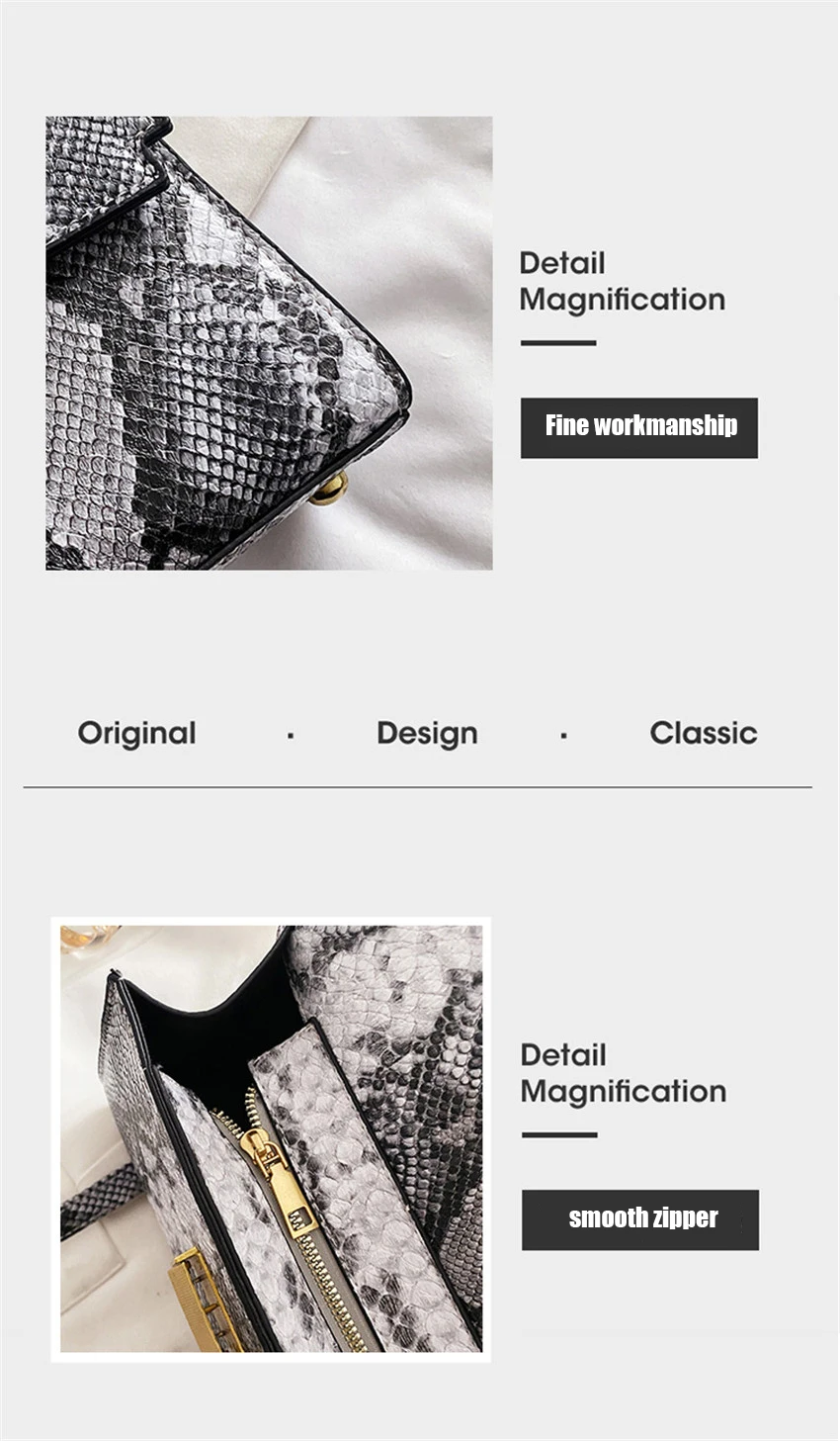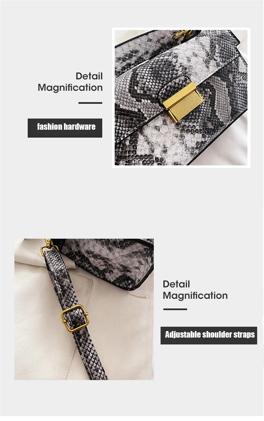 العلامة التجارية الجديدة الفاخرة مصمم حقيبة يد المرأة الأفعى نمط الجلود Crossbody المحافظ موضة حقيبة كتف صغيرة مربع بولسا دي أومبرو