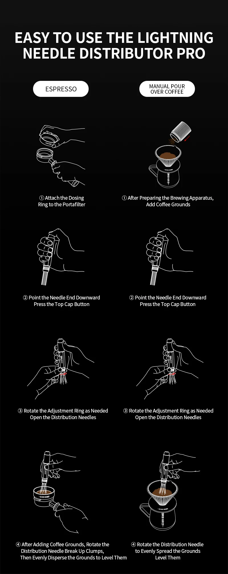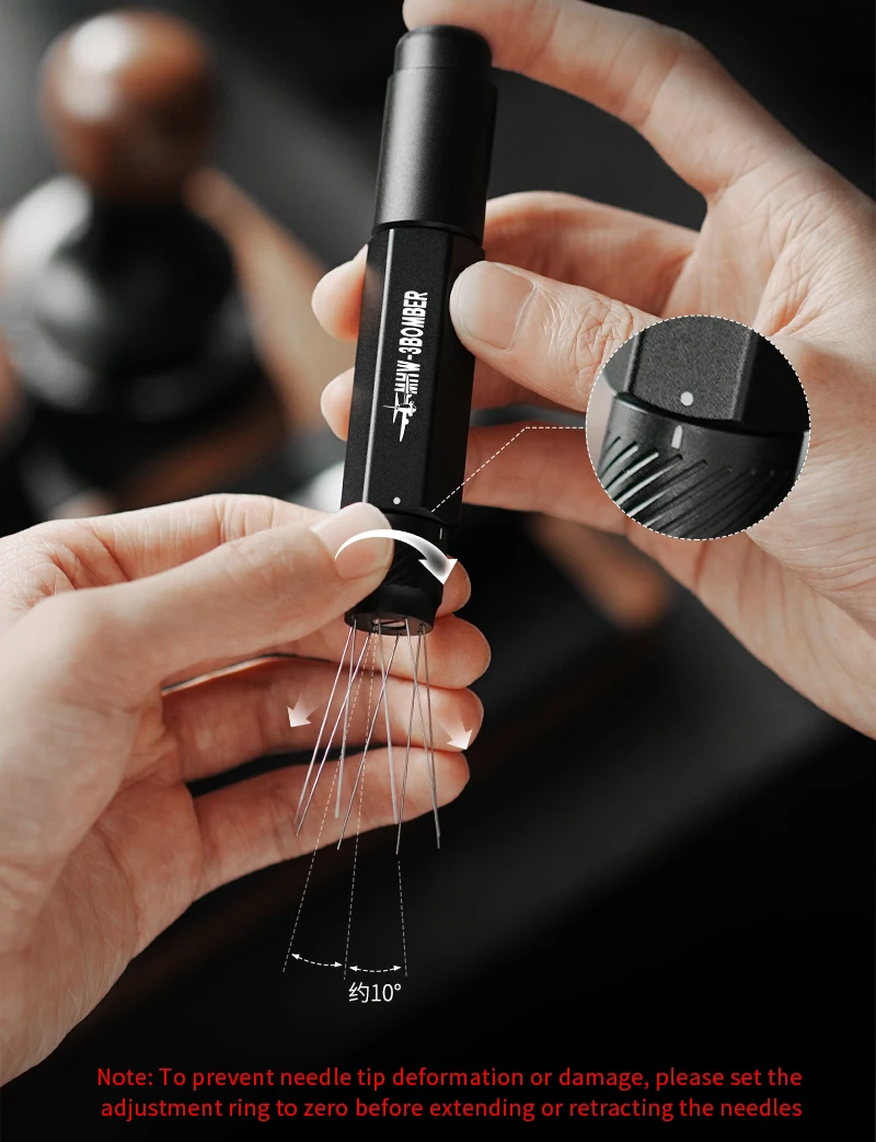 أداة MHW-BOMBER WDT أدوات توزيع الإسبريسو مع 8 إبر إضافية لملحقات قهوة بتصميم تلسكوبي لتحريك الإسبريسو