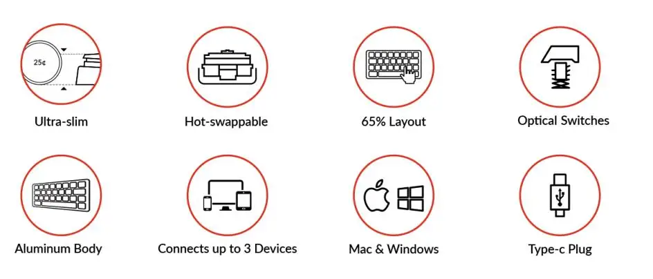 يأتي التصميم المدمج بنسبة 65% مزودًا بمفاتيح أسهم مخصصة مصممة بدقة لتقليل كمية المساحة، وتمنحك إمكانية الوصول إلى جميع الوسائط المتعددة الأساسية ومفاتيح الوظائف من خلال مجموعة من ضغطات المفاتيح عندما تحتاج إليها.