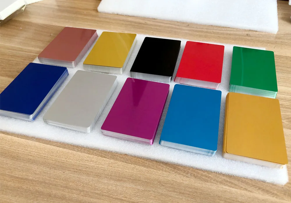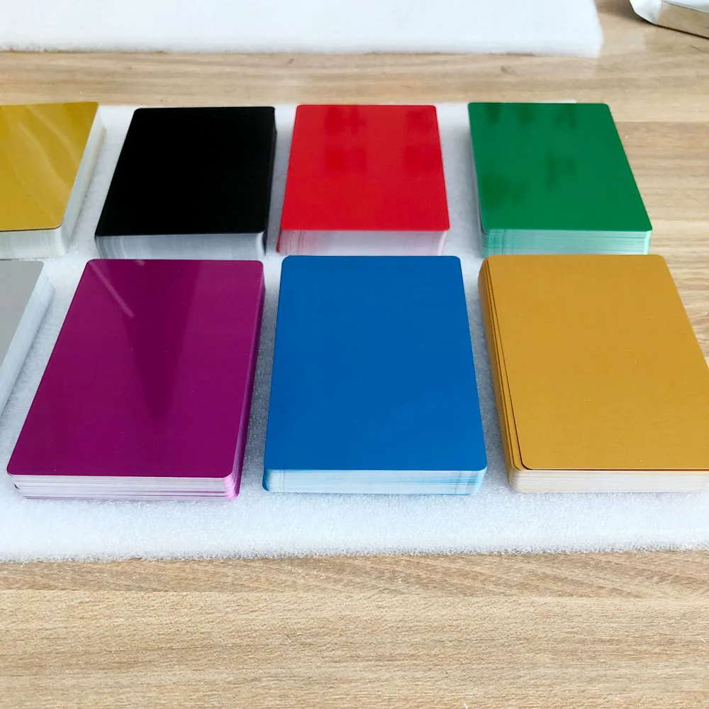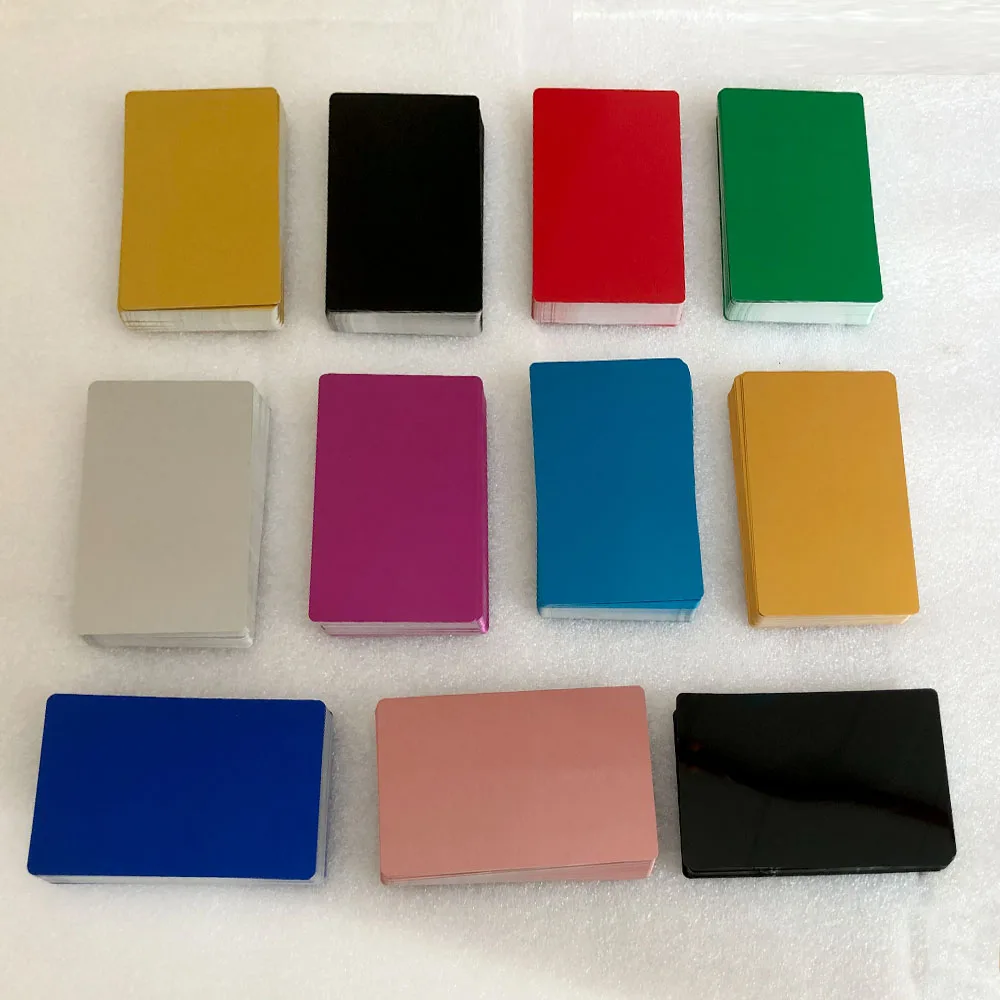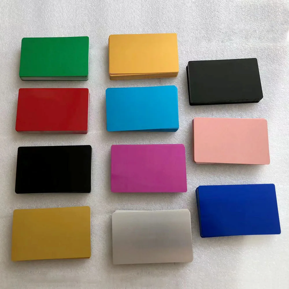 50Pcs Color Metal Business Cards 0.2mm and 0.4mm Thick Engraving DIY Card Office Supplies Aluminum Blank Laser CNC Engraved Card